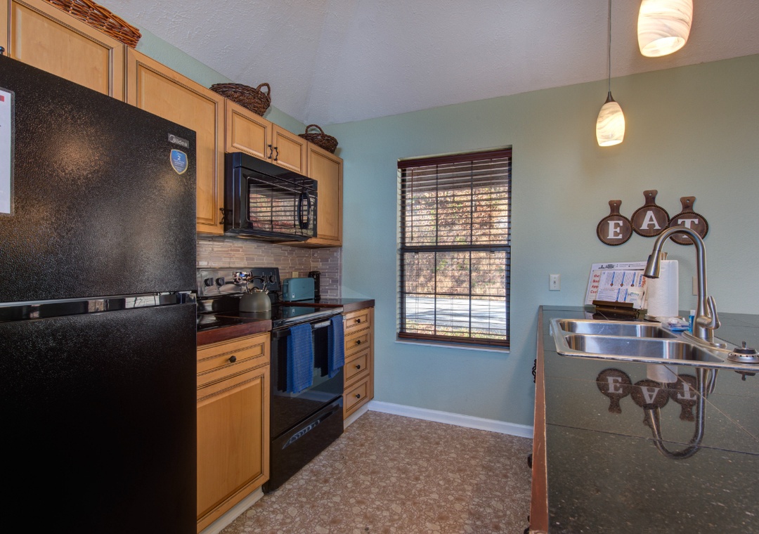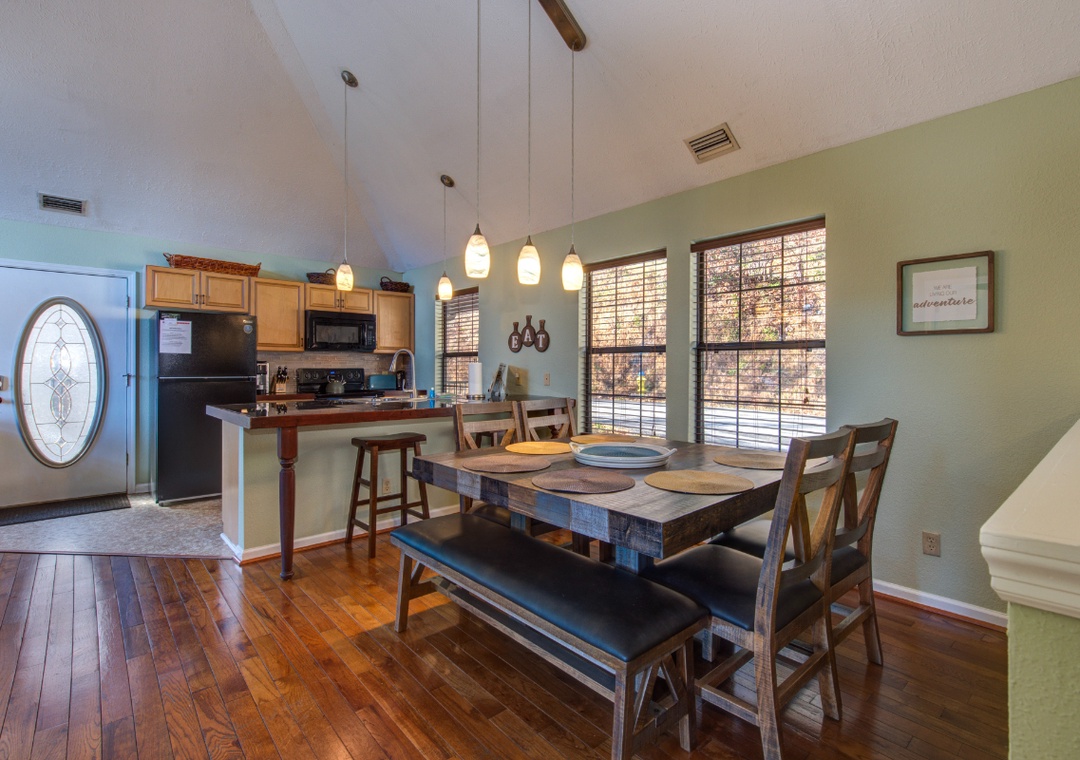 The fully-equipped kitchen boasts modern amenities, making it easy to prepare delicious meals for your family or friends. Well-appointed with a refrigerator, stove, microwave, and other kitchen appliances, perfect for making breakfast, lunch, or dinner throughout your stay! All pots, pans, glasses, plates, silverware, etc., are also there for you! Gather around the inviting dining table to share stories and laughter while gathering over a delicious meal.