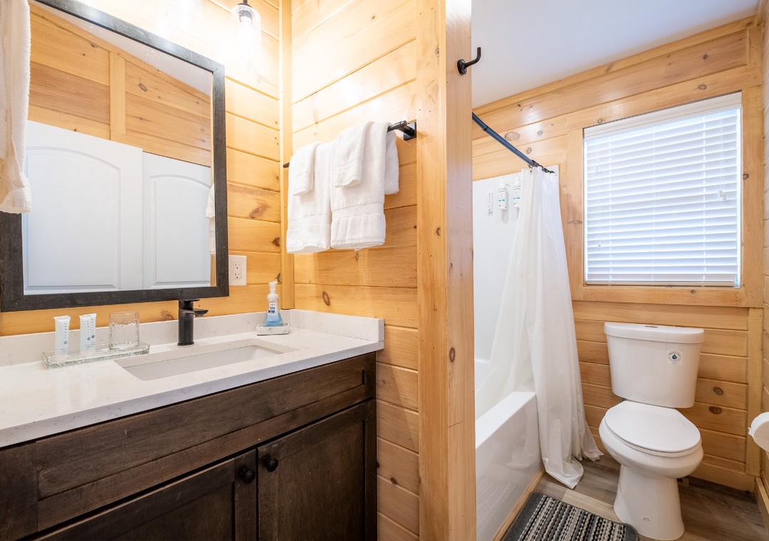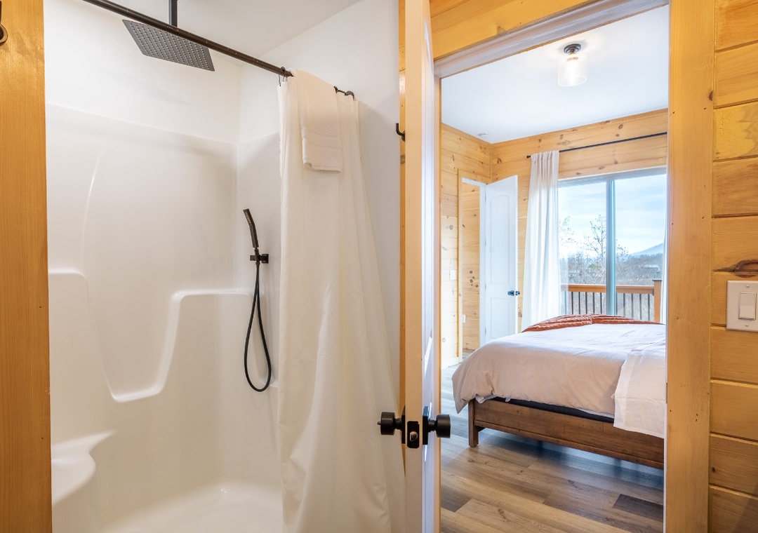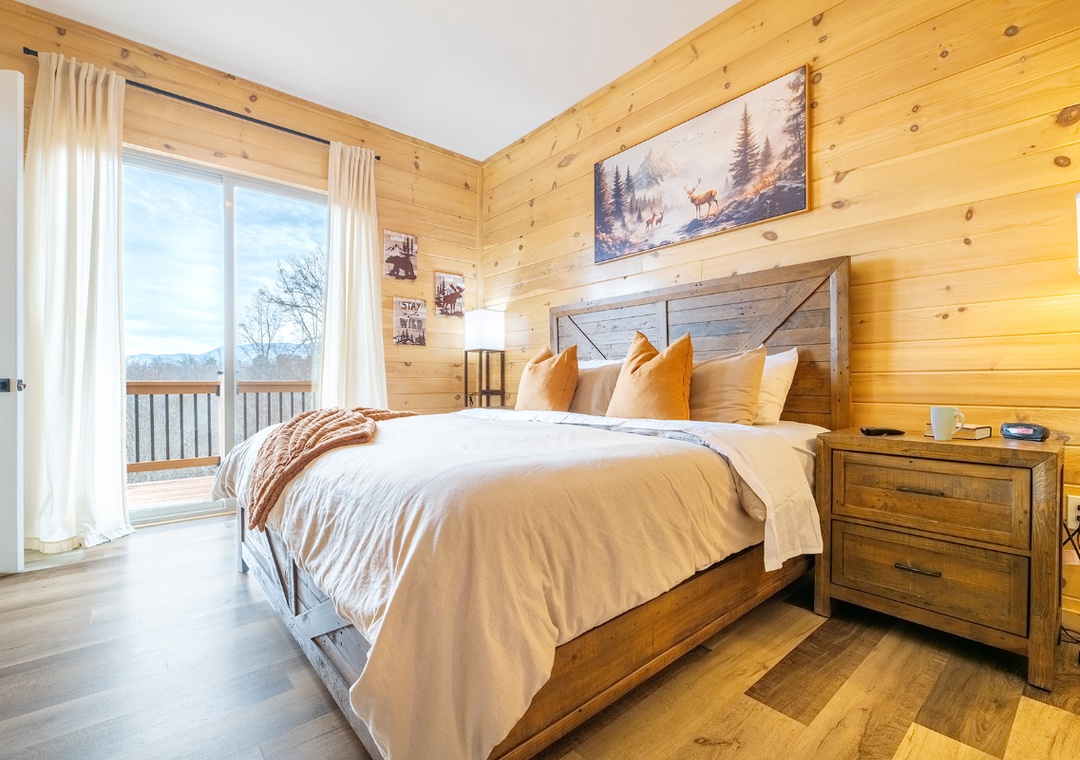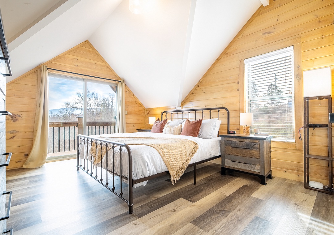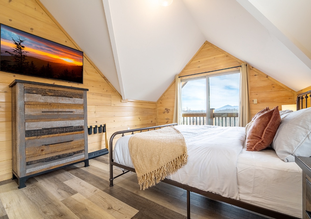 ✔ Bedroom #2 (Upper Level): Cozy Bedroom with a King-Bed and Flatscreen TV; Access to a Full Bathroom with Shower/Tub Combo