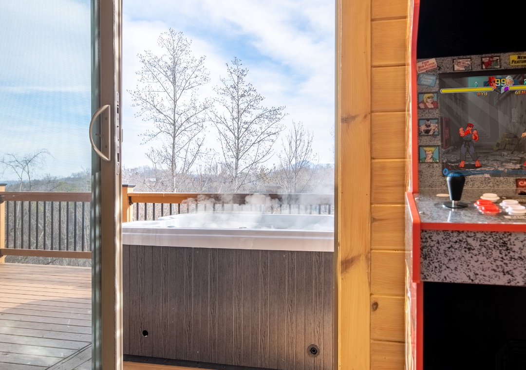 Start in the main living area, where a smart TV, an electric fireplace, and comfortable seating make this space ideal for casual movie nights, streaming your favorite shows, or enjoying a laid-back afternoon with music playing in the background. Downstairs, the game room offers friendly competition and nonstop enjoyment, featuring a pool table and an arcade system that brings out everyone’s playful side. A huge smart TV anchors the room, allowing you to watch sports, host gaming sessions, or keep the action going while others play. Just beyond the game room, the dedicated home theater takes entertainment to the next level. With a jaw-dropping 86-inch smart TV, this cinematic space transforms movie nights into an unforgettable experience. Grab some snacks and settle in for a true theater-style viewing. Outside, step onto the lower-level back deck and sink into the private hot tub. After a day of gaming, movies, and mountain adventures, the hot tub offers the perfect place to unwind while enjoying crisp mountain air and peaceful seasonal views of Douglas Lake. Evening soaks under the stars or early morning dips set the tone for a truly rejuvenating stay. Beyond the cabin, Douglas Lake opens up an entirely new world of entertainment and adventure. Enjoy boating, jet skiing, kayaking, paddleboarding, and more water activities on the lake’s expansive waters.