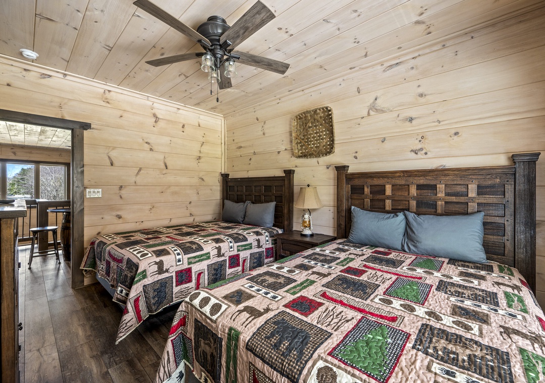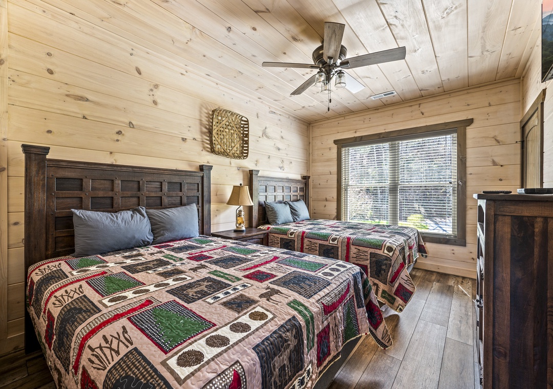 ✔ Bedroom #3 (Upper Level): Cozy Bedroom with 2 Queen-size Beds, Flat-screen TV, and Access to Hallway Bathroom with Shower/Tub Combo