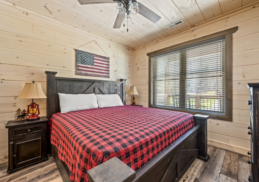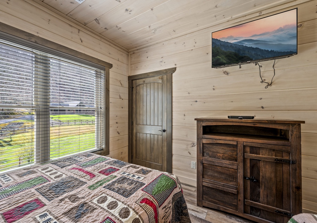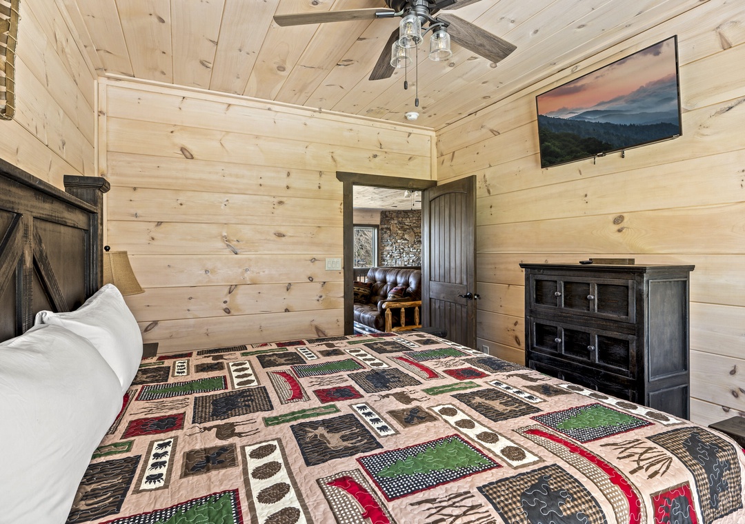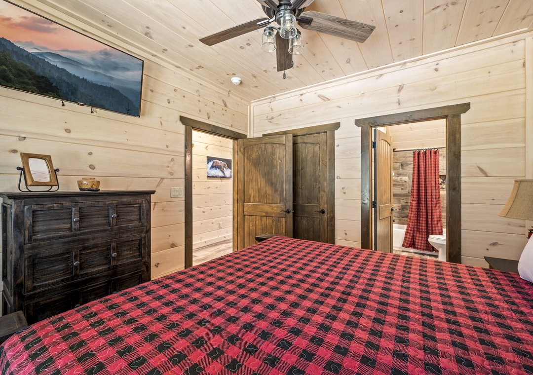 ✔ Bedroom #4 (Upper Level): Comfy Bedroom with a King-size Bed, Flat-screen TV, and Access to Hallway Bathroom with Shower/Tub Combo