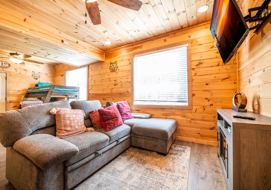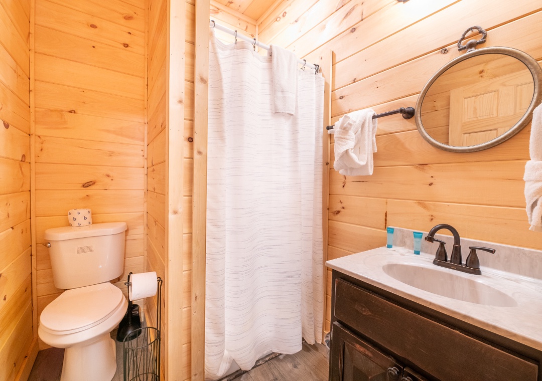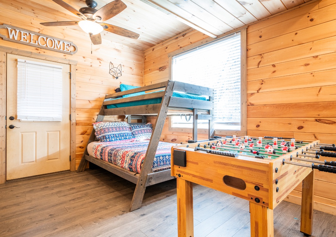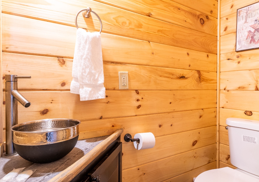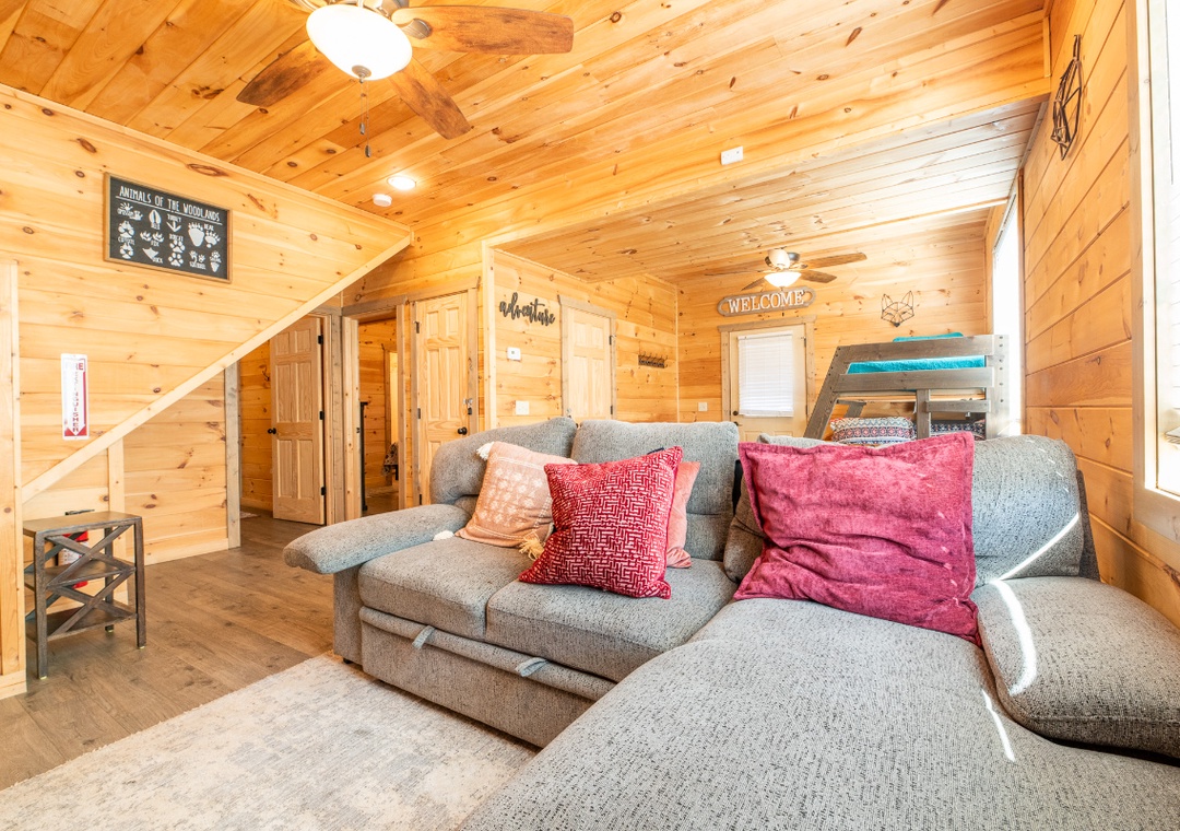 ✔ A Twin-over-Queen Bunk Bed in the Lower Level Main Area for Additional Sleeping Space and a Half Bathroom on the Main Level for your convenience
