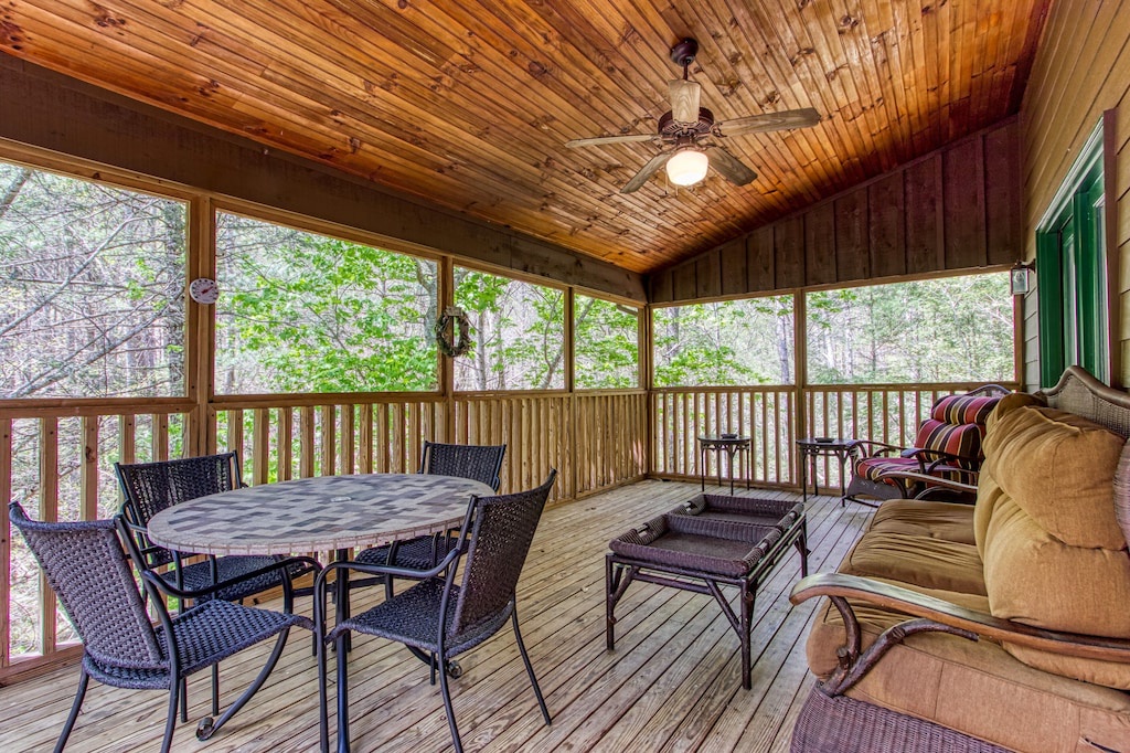 Spacious and loved the pool table and fireplace! Added a great fall feel ! The outdoor screened in porch is a great place to enjoy hot tea or hot cocoa and listen to nature !- Reviewed On: 10/28/2023