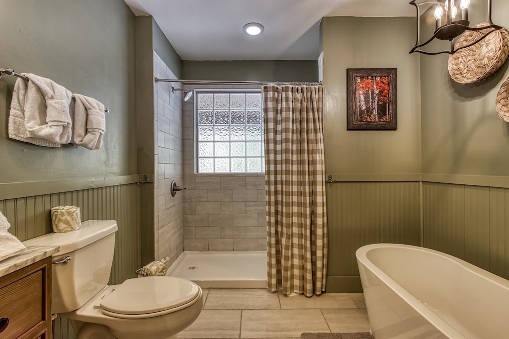 Bedroom #1: King-sized bed with attached private bathroom with separate shower and tub