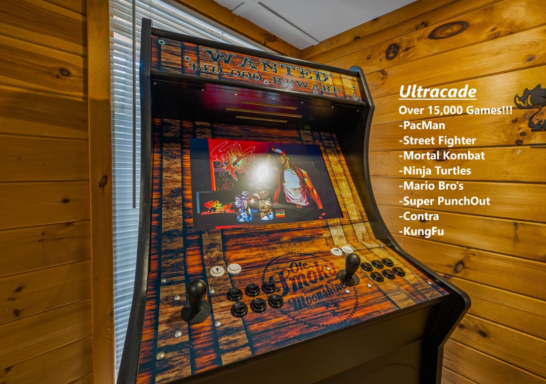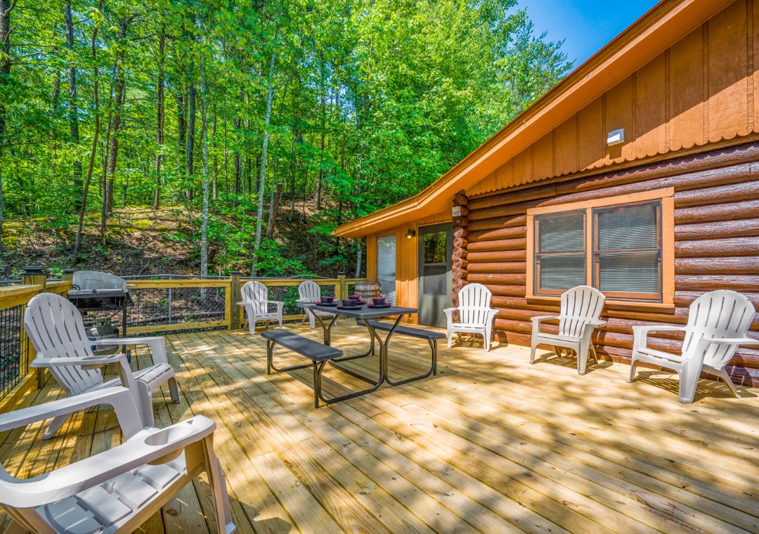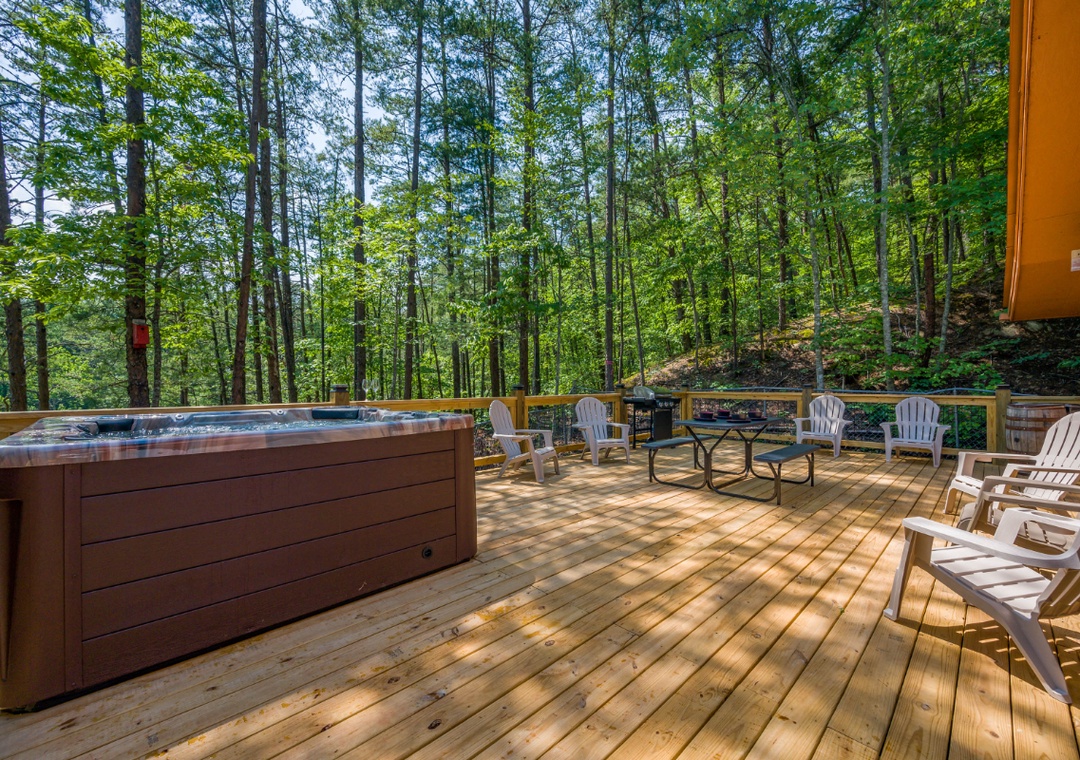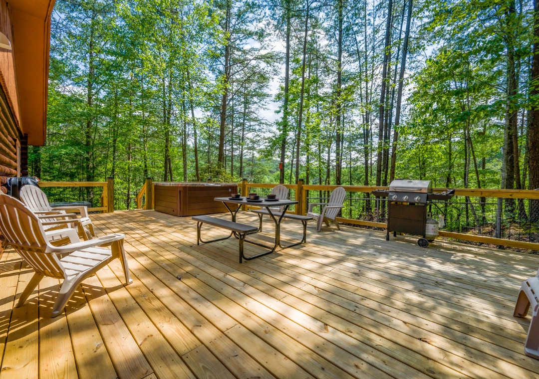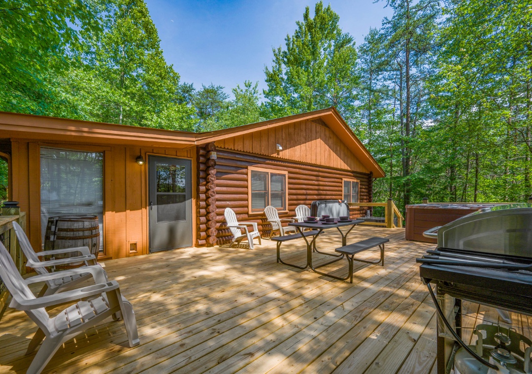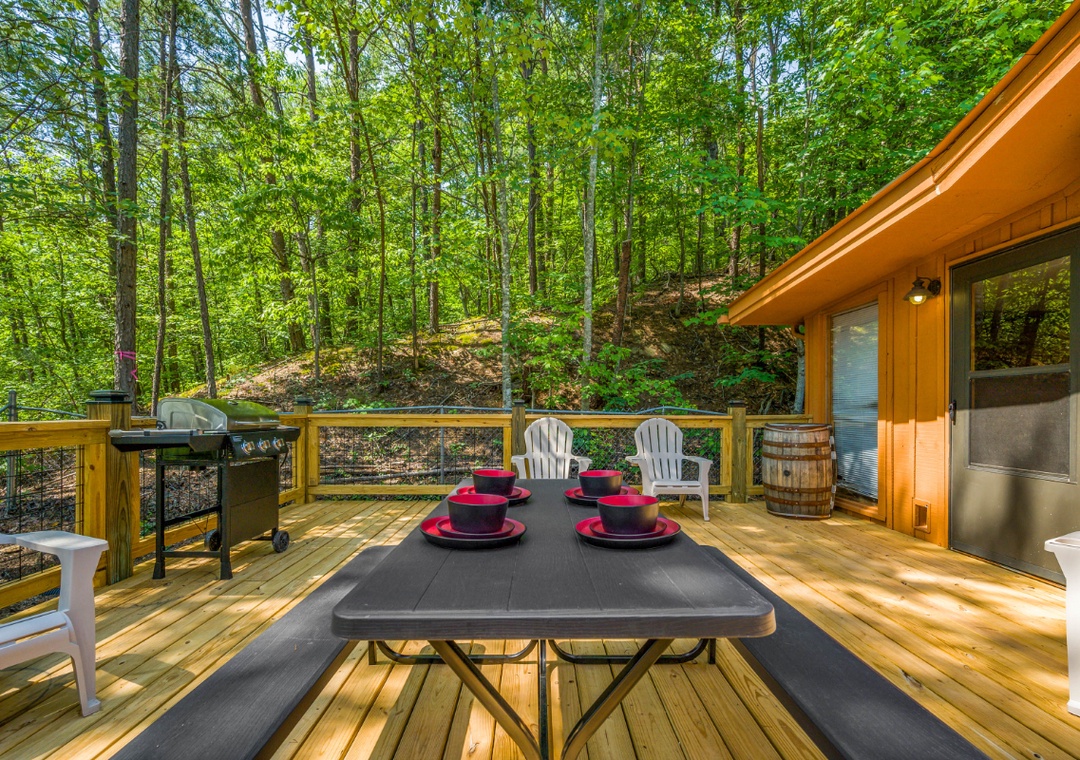 The dedicated game area is packed with options to keep everyone entertained for hours. Challenge your group to high-score battles on the arcade machine, keep the energy going with fast-paced matches on the foosball table, or turn up the competition with intense air hockey showdowns. There’s even corn hole for laid-back fun that brings everyone together. After an evening of games, the entertainment continues in the cozy living room. Set the mood with the glow of the electric fireplace while you stream your favorite movies, shows, or sports on the Google TV. Outside, the private hot tub on the back deck offers a relaxing way to recharge between game sessions. Soak under the stars, share stories from the day’s competitions, and enjoy the peaceful wooded setting that surrounds you. Fire up the propane BBQ grill and turn dinner into an event of its own, complete with outdoor dining and mountain air. For guests who love outdoor recreation, access to five private fishing ponds adds yet another activity to your stay. Spend the afternoon casting a line, enjoying the quiet thrill of the catch, and making the most of the natural beauty that makes the Smokies so special.