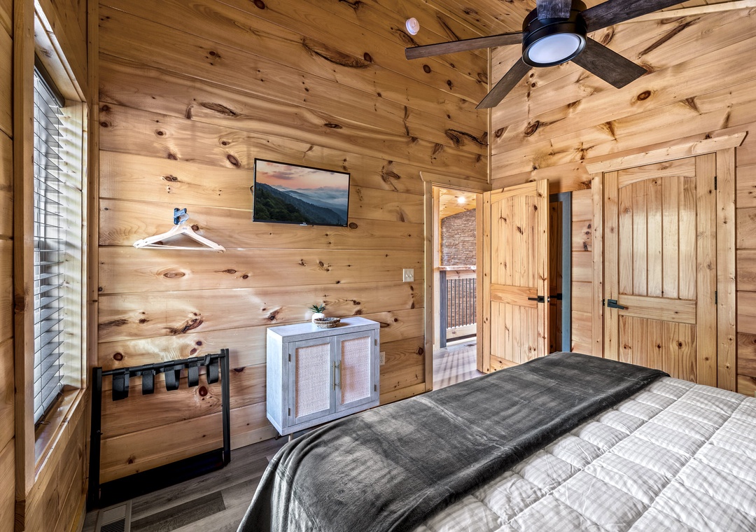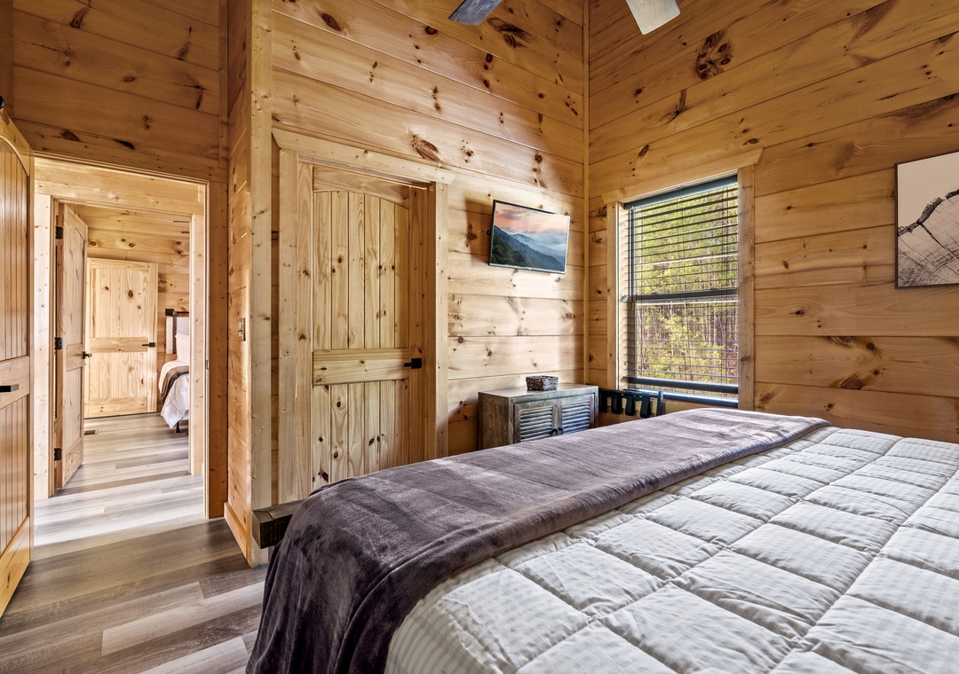 ✔ Bedroom #2 (Upper Level): Spacious Bedroom with a King-sized bed, Flat-screen TV, and Attached Full Bath with Stand-up Shower