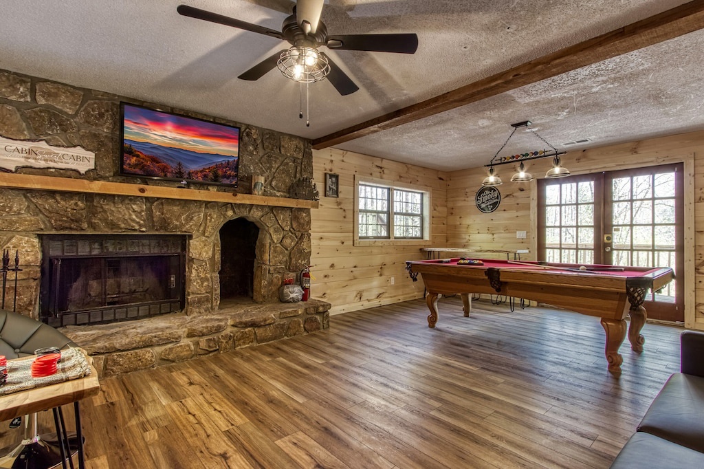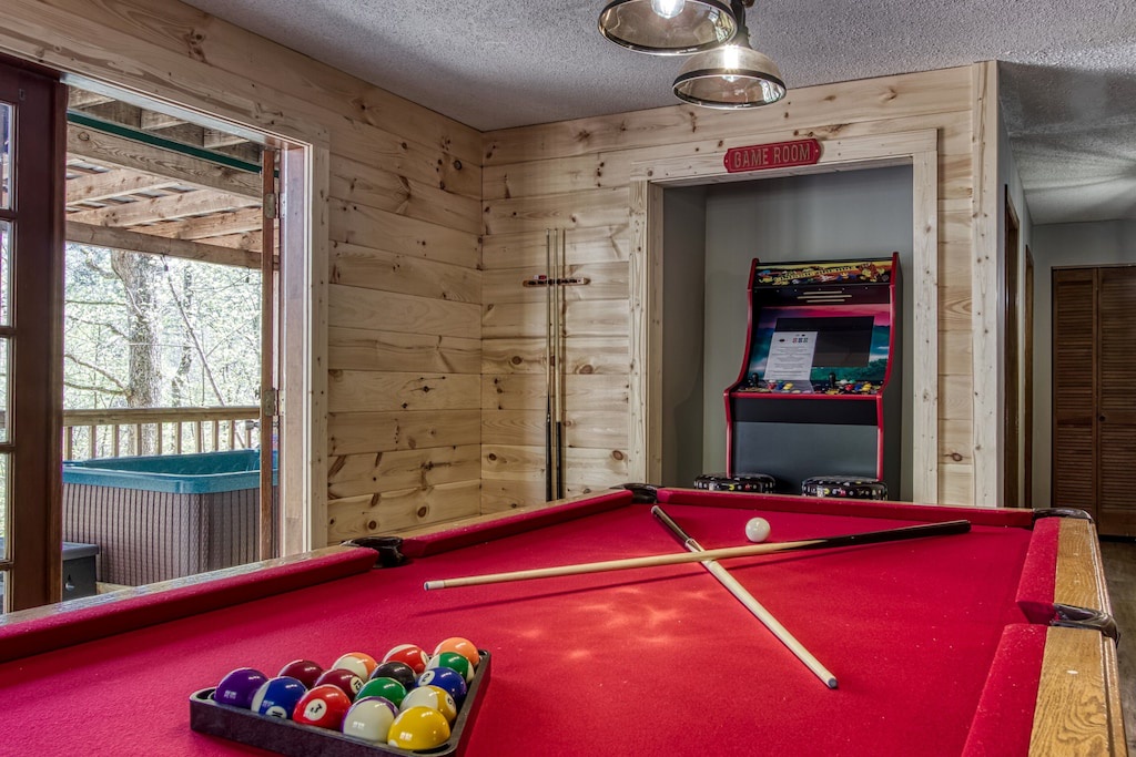 The minute you arrive at Cant Bear to Leave you can sit back and relax! Outside, you are surrounded by nature and the stillness of the Smokies and can kick back in our hot tub and take in the views from one of the multiple rocking chairs or settled in around the fire pit. Inside, head on down to the game room, which has an additional living space, fireplace, arcade, and a large pool table -- - perfect for a competitive game or two with your family!