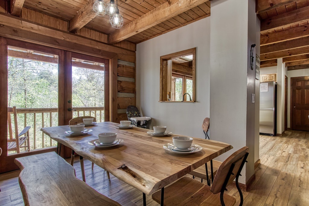 Beautiful cabin, beautiful location. Just the right size for our group of 8. We even got to see a bear on the deck!!! Close to town and all of the restaurants and shops but far enough up the mountain to feel private and secluded.- Reviewed On: 8/17/2023