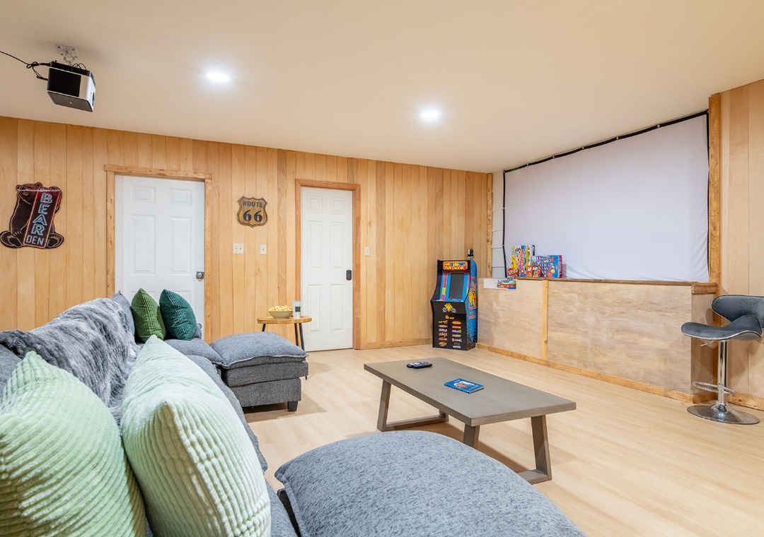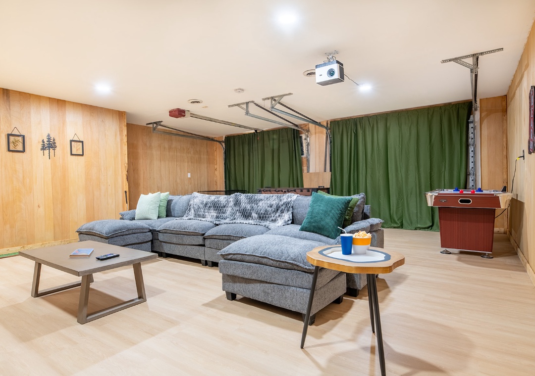 ✔ Game & Theater Room – 120” Projector Screen, Foosball, Air Hockey, Multicade