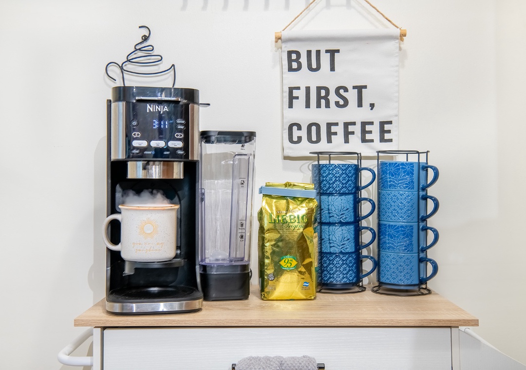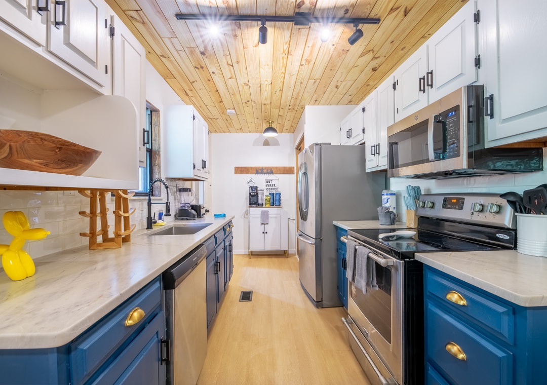 • Fully equipped kitchen with full-size appliances, cookware, dishwasher, and coffee station