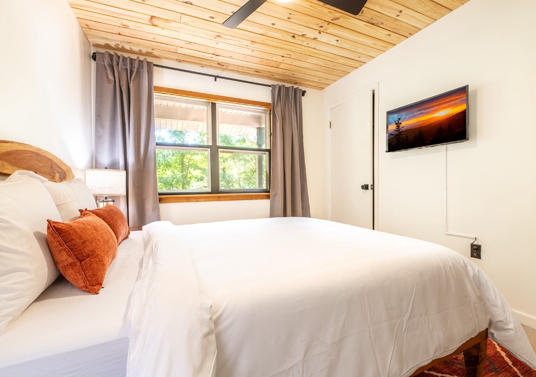 ✔ Bedroom 1 (Main Level): Queen bed, Roku TV, closet space