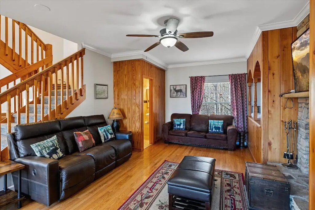 Outside, the chalet offers a flat and paved driveway, room for a trailer and parking for 6 to 7 vehicles, and easy access to area attractions, restaurants, and shops.