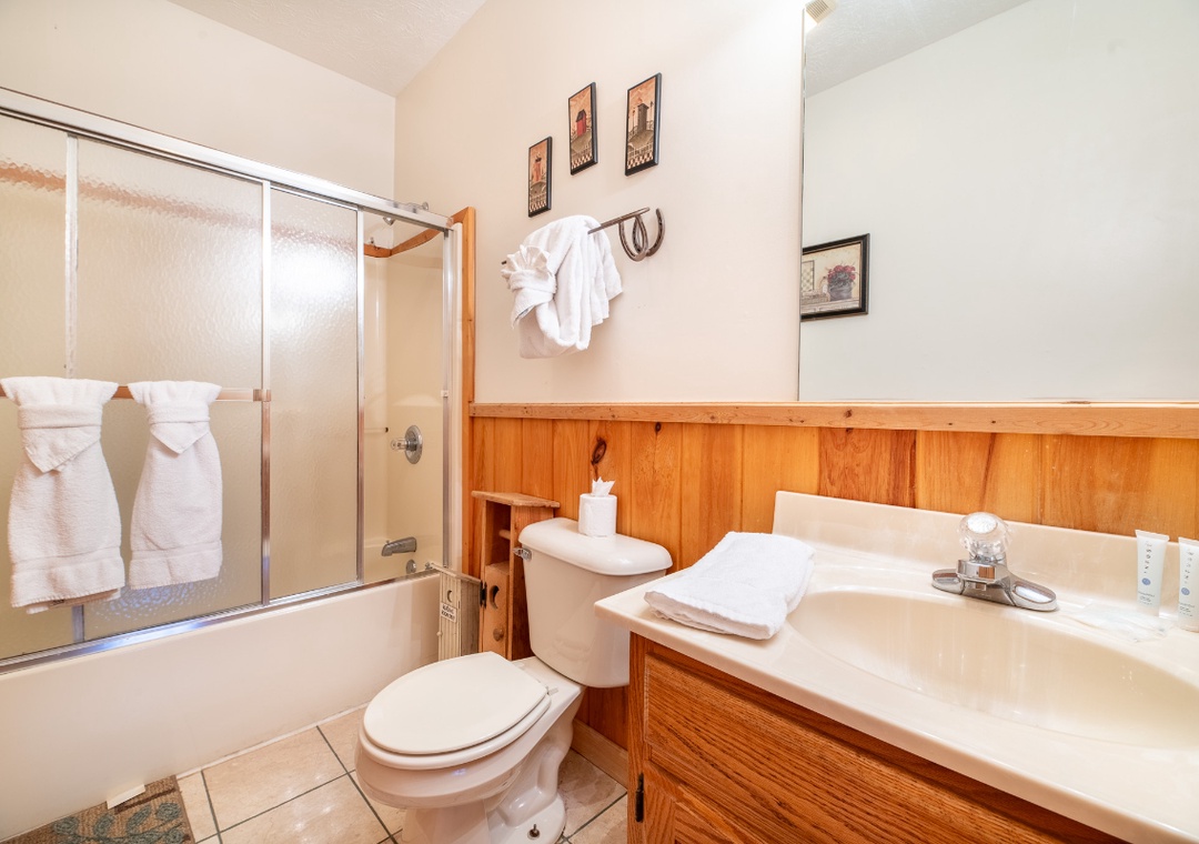 ✔ Bedroom #3 (Lower Level): Cozy Bedroom with a Queen-sized Bed; Access to a Full Bathroom with Shower/Tub Combo