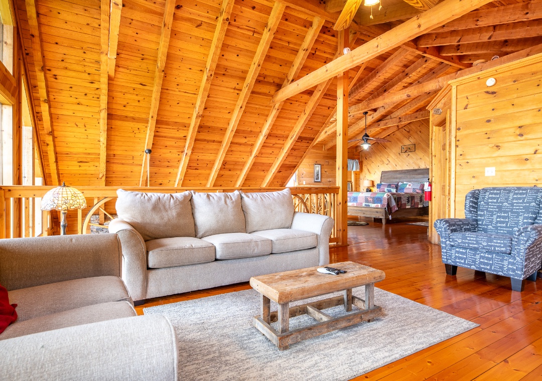 ✔ Loft: Inviting King-sized Bed and Separate Queen Sleeper Sofa and a Flat-screen TV; Attached Full Bathroom with Stand Up Shower and Separate Jacuzzi