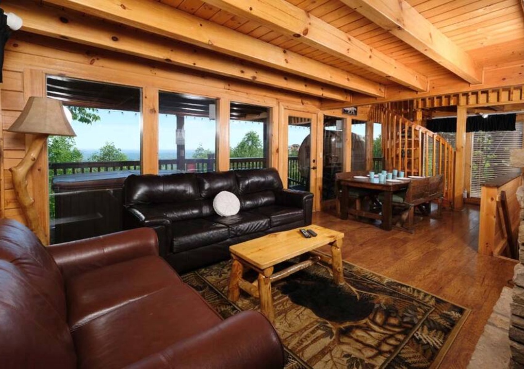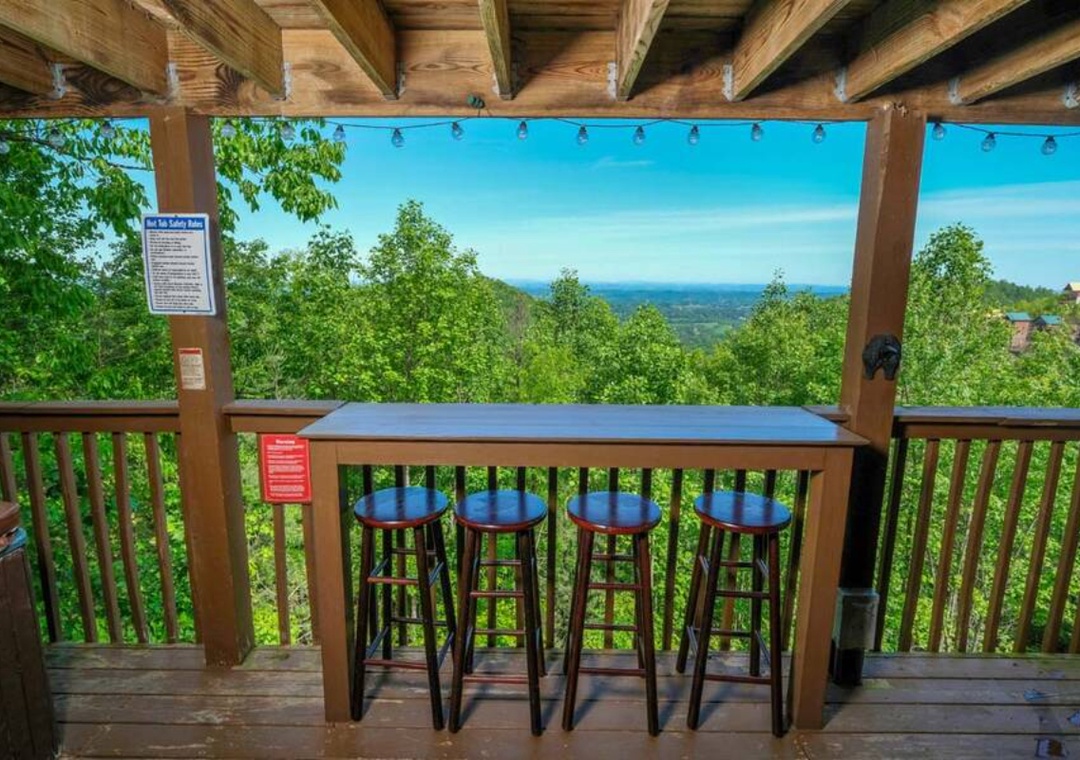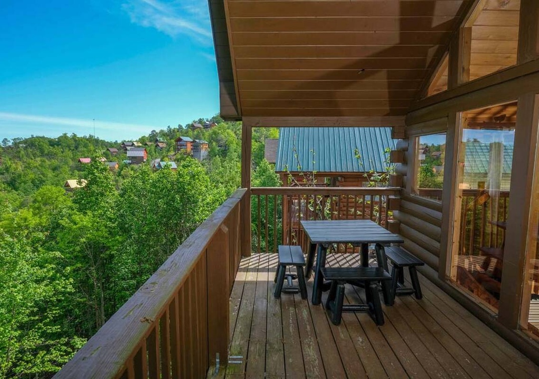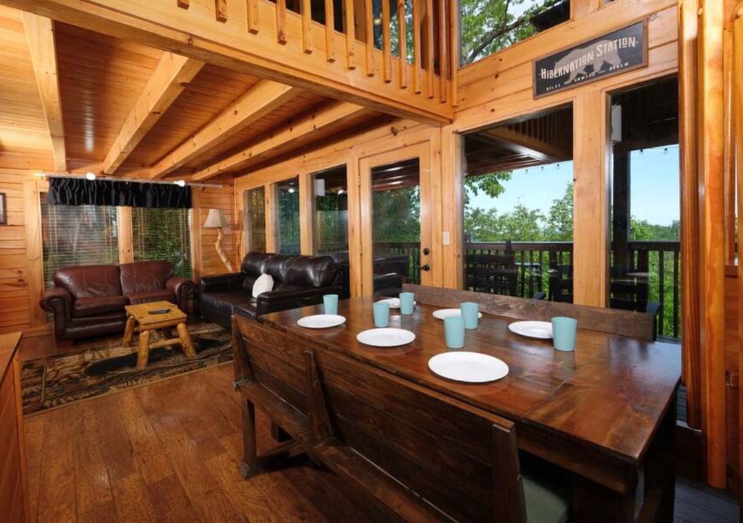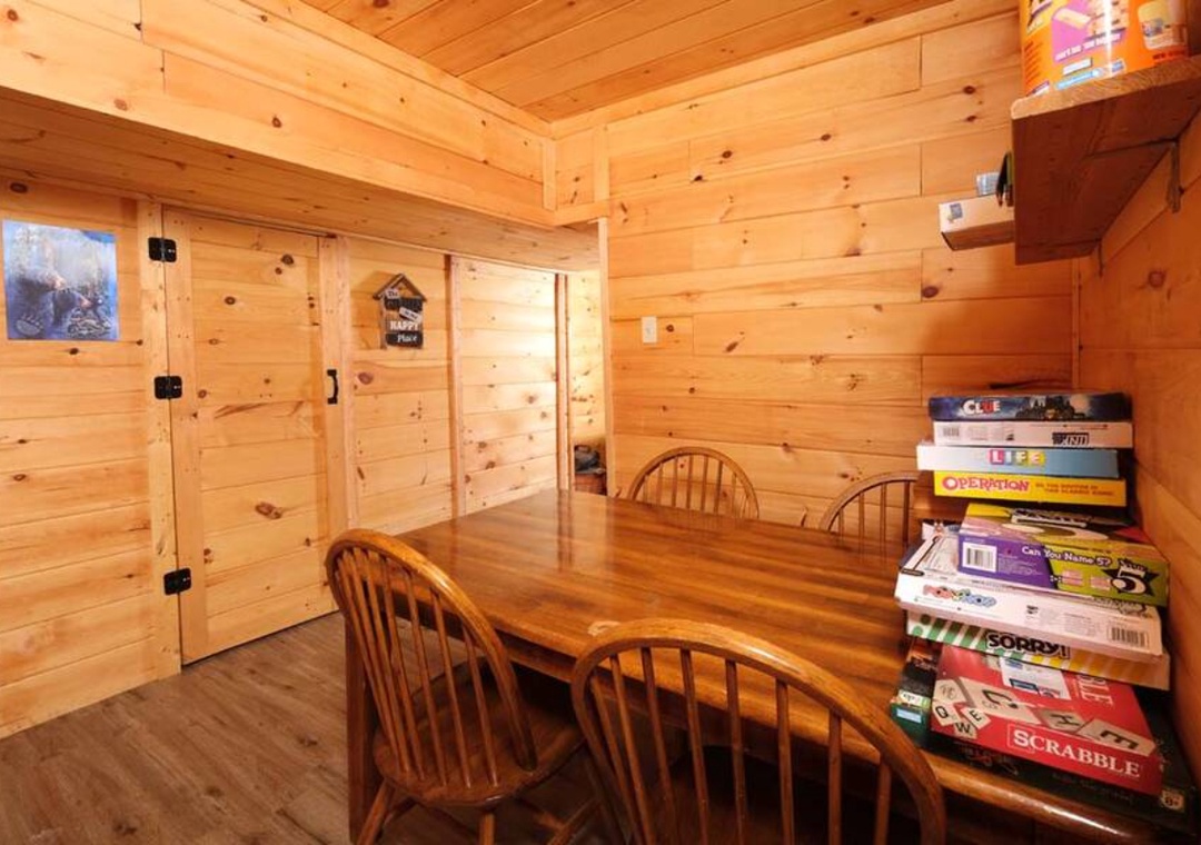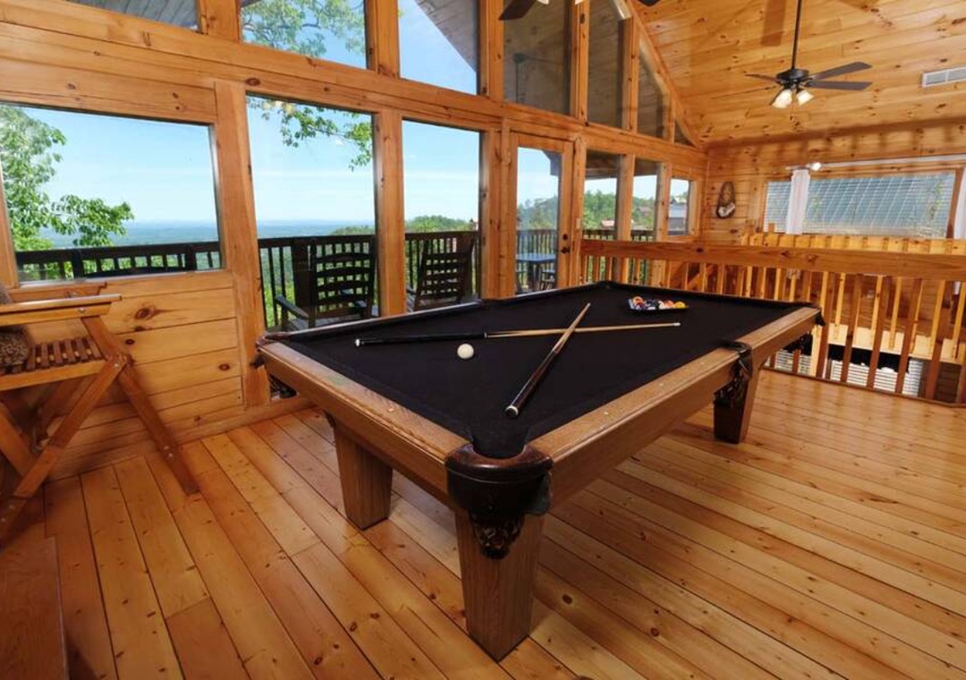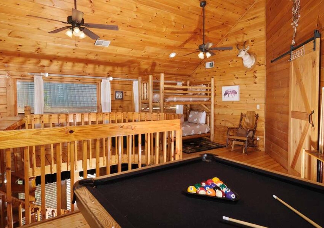 Our cabin is the perfect retreat for both outdoor and indoor fun! Featuring a roomy loft with cathedral ceilings and expansive windows where you can enjoy a game of pool while taking in the scenic views. Meanwhile, in the downstairs game room, ensure endless fun with foosball, air hockey, an arcade, and an Xbox 360. In addition, the in-cabin movie theater offers hours of movie entertainment with its plush theater-style seats and a 70” flat-screen TV. There are also board games and a separate space with a table for four to ensure that there's never a dull moment during your stay. Step outside onto the deck and you’ll know that Chubby Bear goes beyond the usual with a relaxing hot tub and a personal sauna for the ultimate relaxation. As part of the Eagle Crest community, you’ll also have access to a seasonal pool just half a mile from the cabin. Bring your bathing suits and pool toys for a refreshing dip. And as the day comes to an end, kick back in one of the outdoor seating areas on the deck and take in the gorgeous views while you sip moonshine or your evening glass of wine. Discover the perfect blend of comfort, entertainment, and natural beauty at Chubby Bear—a haven in the Smoky Mountains for an unforgettable mountain retreat!