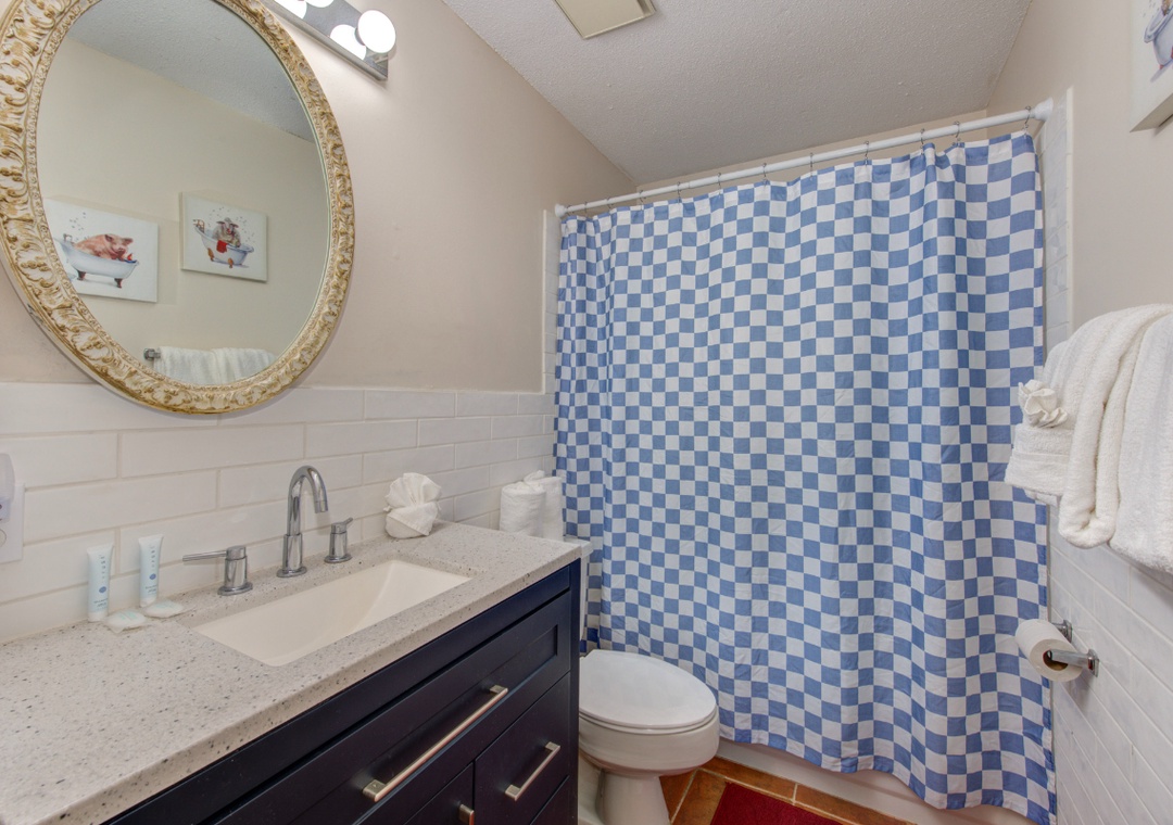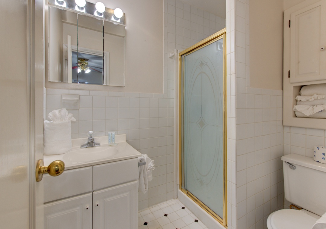 ✔ Bedroom #3 (Main Level): Relaxing Bedroom with a King-Bed and Flatscreen TV; Access to a Full Bathroom with a Walk-in Shower