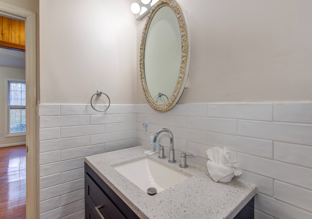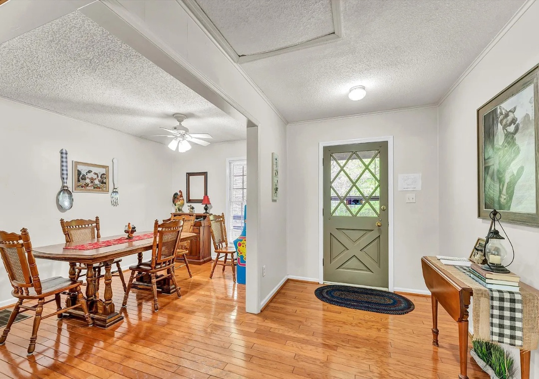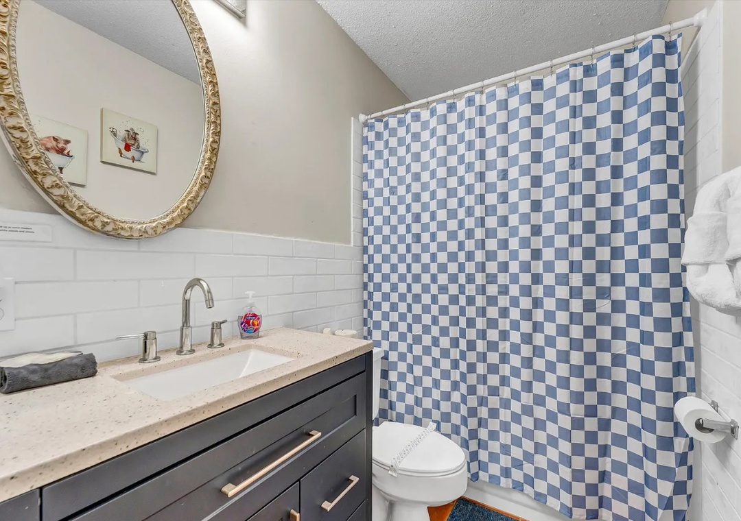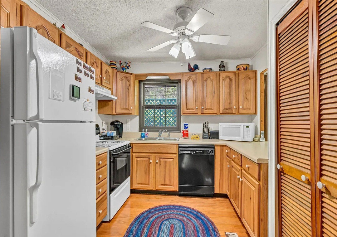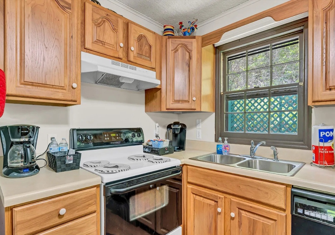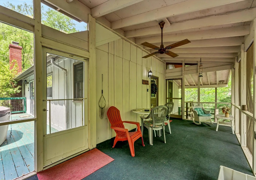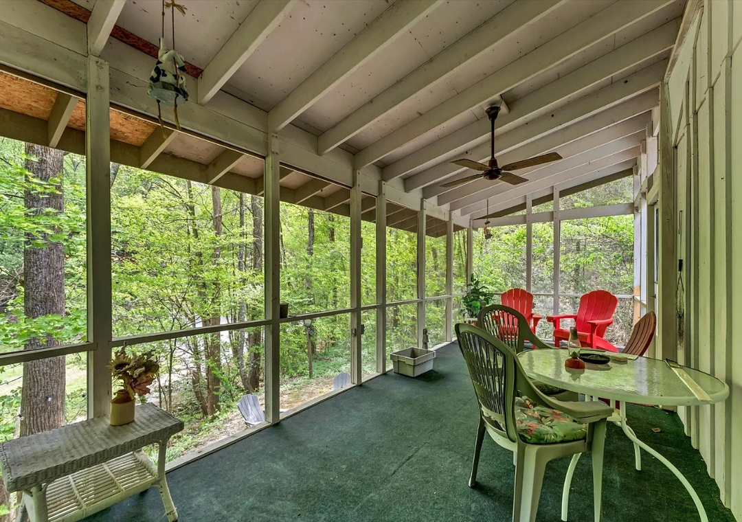 The fully-equipped kitchen is as functional as it is inviting. Well-appointed with a full-sized refrigerator, dishwasher, stove, microwave, and other kitchen appliances perfect for making breakfast, lunch, or dinner throughout your stay! All pots, pans, glasses, plates, silverware, etc., are also there for you! Gather around the inviting dining table inside, or take your meal out to the table on the screened-in porch to share stories and laughter beneath the trees, each bite made even better by the fresh mountain air and the natural beauty all around.