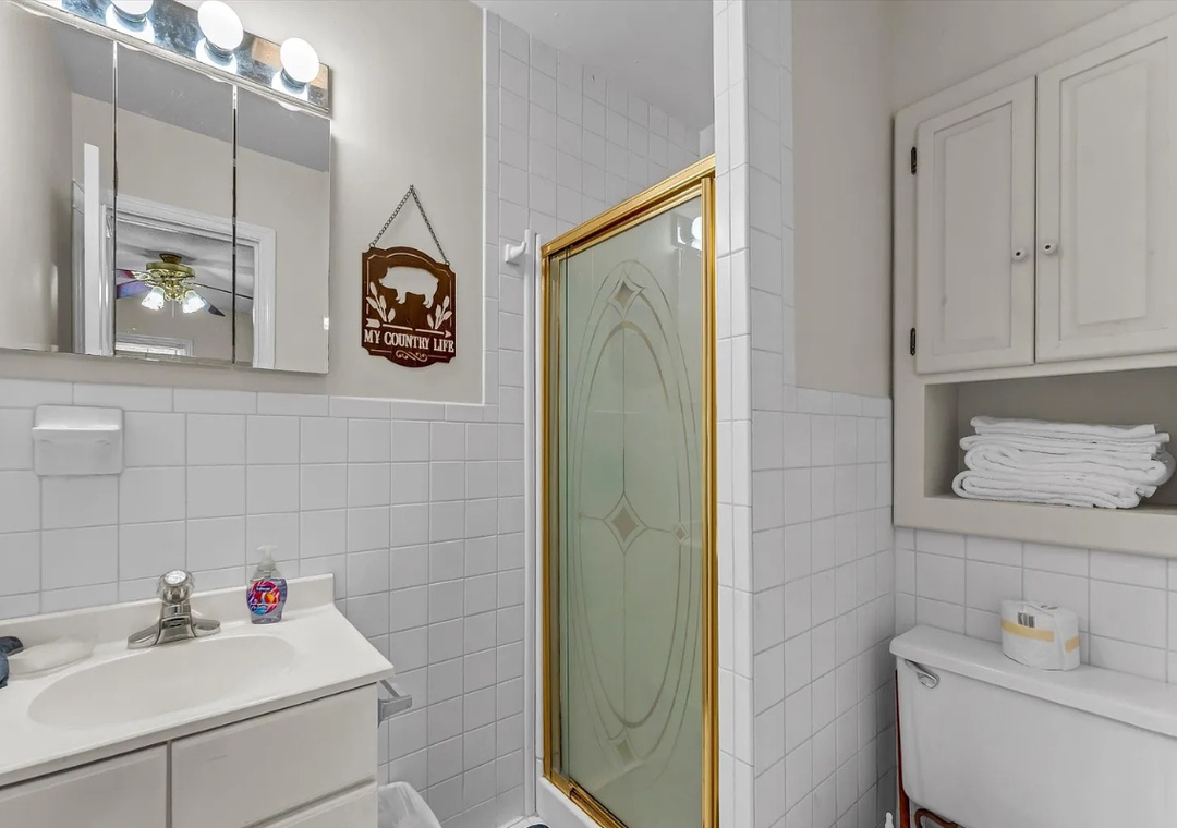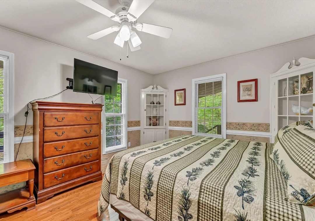 ✔ Bedroom #1 (Main Level): Main Bedroom with a Queen-Bed and Flatscreen TV; Attached Full Bathroom with a Walk-in Shower
