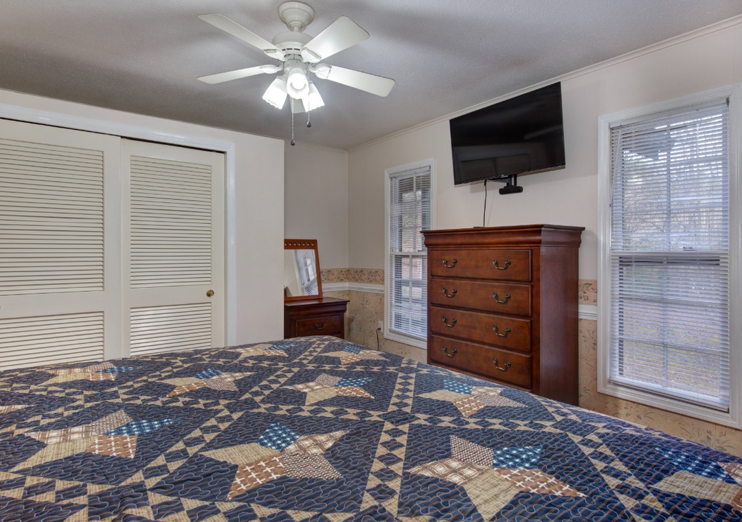 ✔ Bedroom #1 (Main Level): Main Bedroom with a King-Bed and Flatscreen TV.