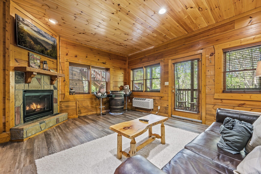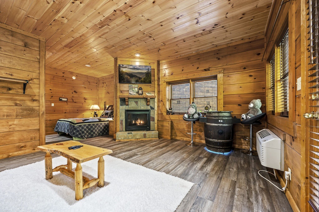 From the moment i arrived i felt at home. Close enough to town but away enough not to see all the lights. Pool right out front door so no need to walk far. A trolly stop at the bottom of the hill makes great for not having to drive. Such a beautiful peaceful clean cabin. Anytime i had a question no matter the time justin would respond.- Reviewed On: 9/17/2023