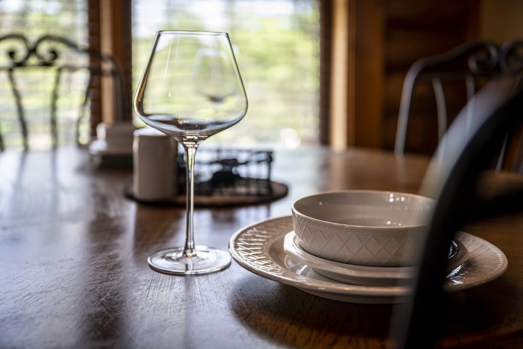 Fully equipped modern kitchen with full-sized refrigerator, dishwasher, stove, microwave, and other kitchen appliances perfect for making breakfast, lunch or dinner throughout your stay! All pots, pans, glasses, plates, silverware, etc. are also there for you. There is a lovely dining room located right off the kitchen, surrounded by windows to take in the mountain ambiance.