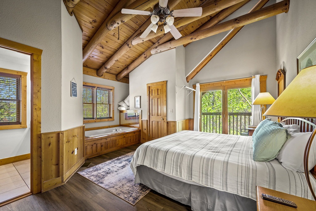 Bedroom #1 (Upper Level): Spacious bedroom with King-sized bed, in-room jacuzzi tub, twin-sized sofa