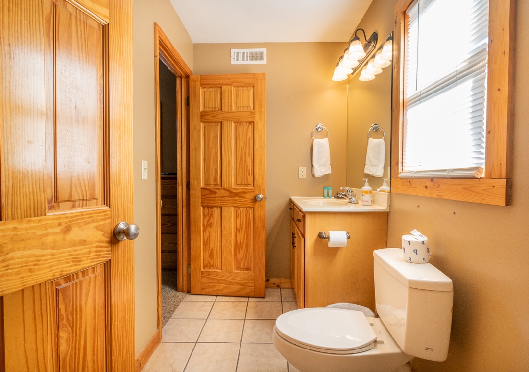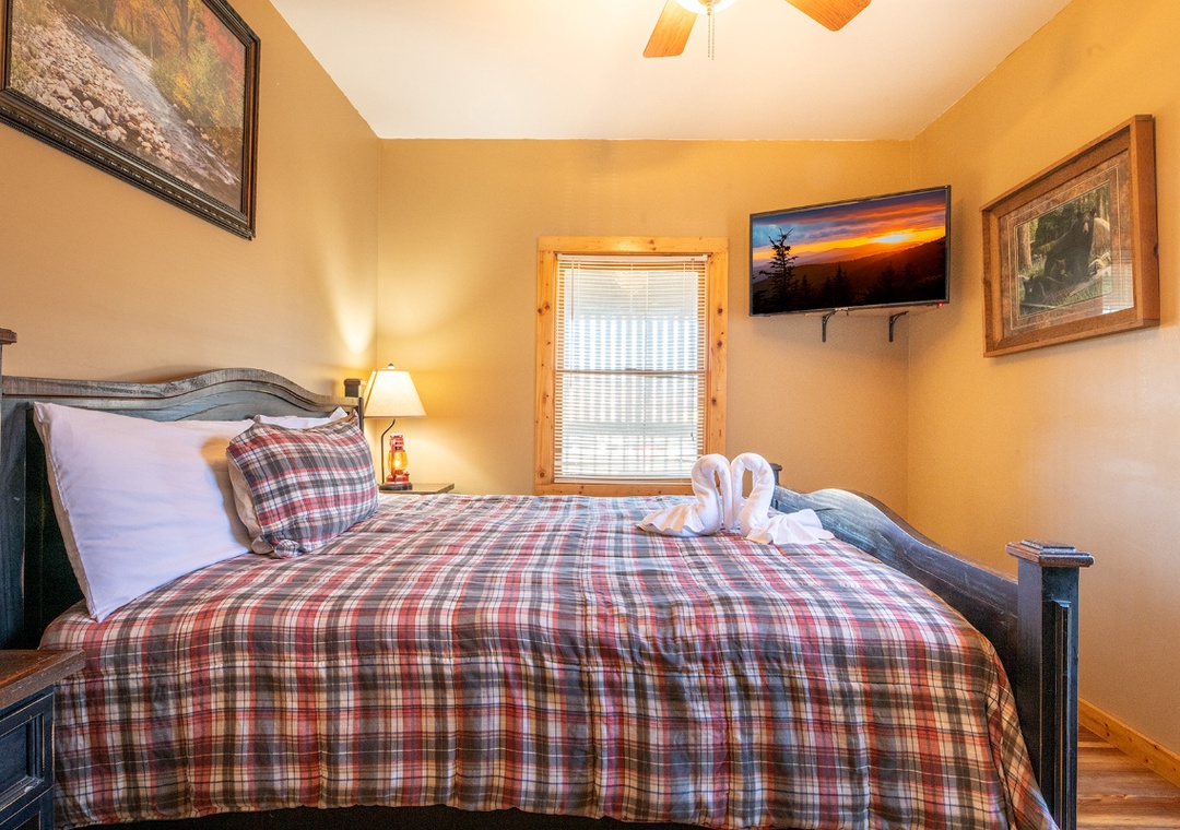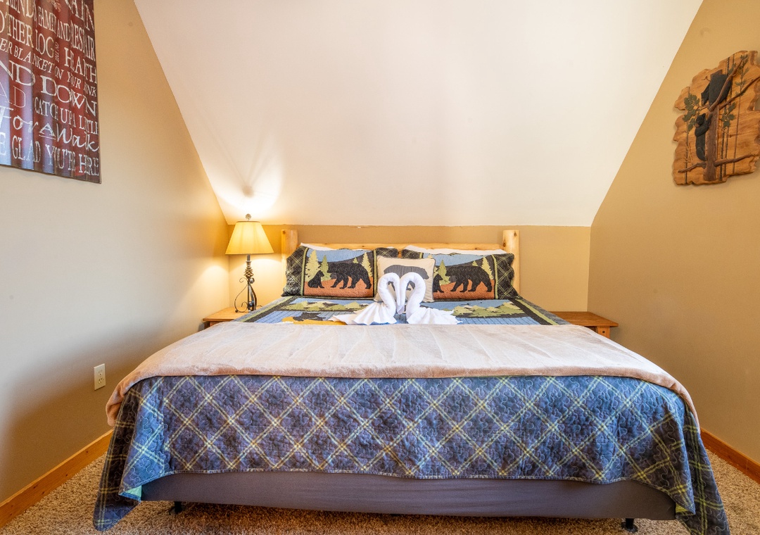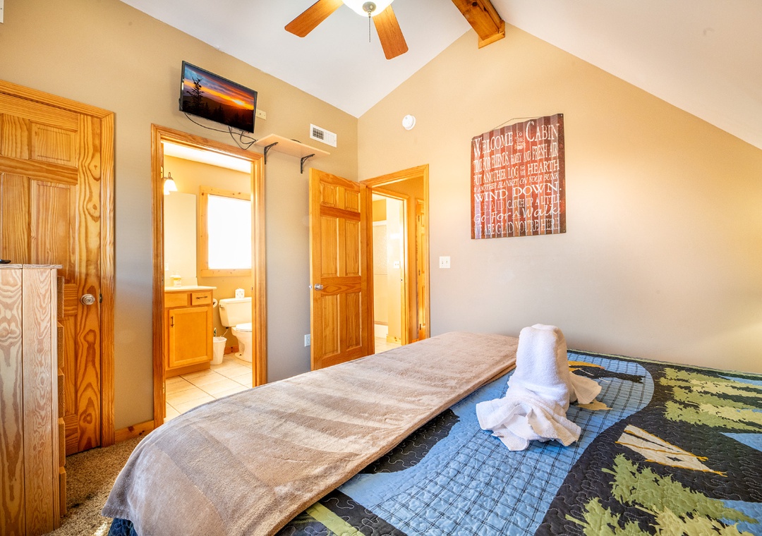 ✔ Bedroom #2 (Upper Level): Comfy Bedroom with a King-size Bed, Flat-screen TV, and Access to Full Bathroom with Stand-up Shower