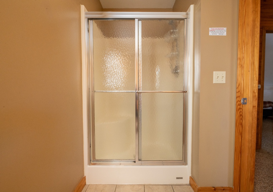 ✔ Bedroom #4 (Upper Level): Inviting Bedroom with a Twin-over-Queen Bunk Bed, Flat-screen TV, and Access to Full Bathroom with Stand-up Shower
