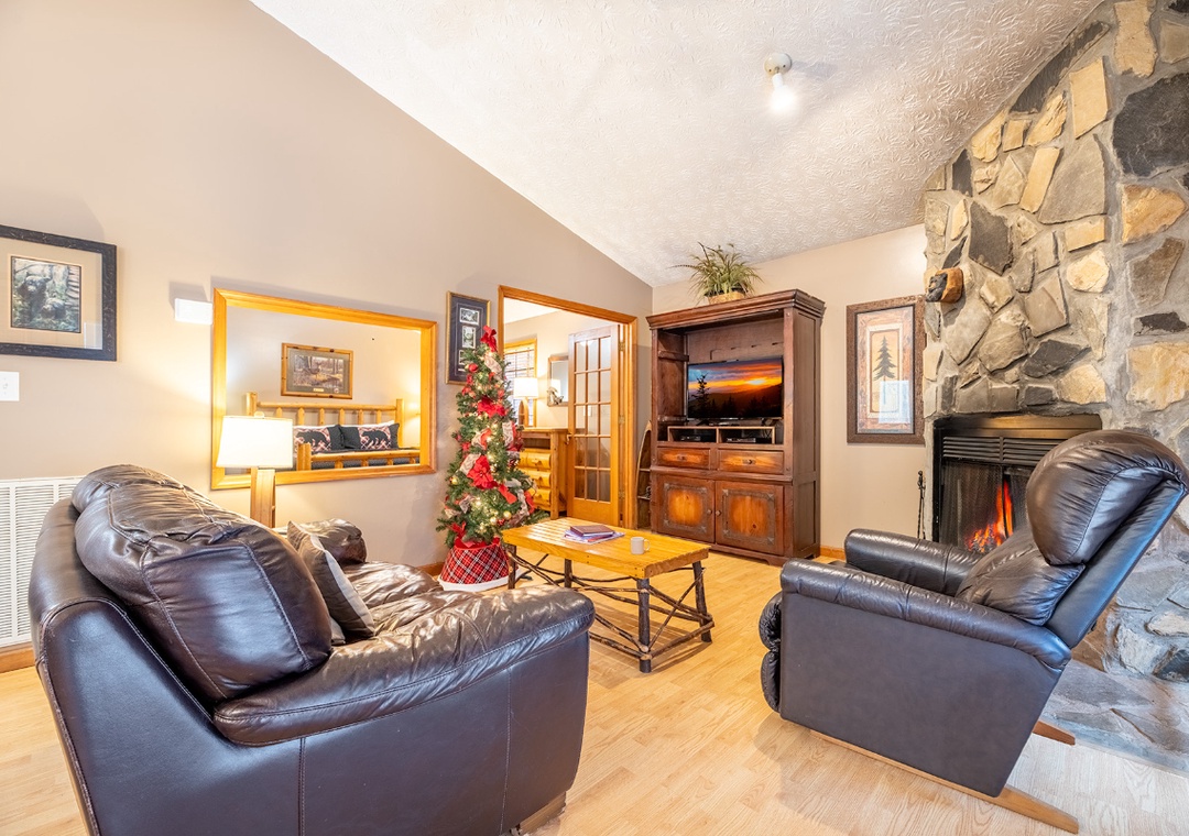 Welcome to “Cozy Bear Hideaway,” where peaceful wooded views and warm mountain charm come together to create the perfect romantic Smoky Mountains escape. Decorated with a mountain bear/fishing theme, our intimate 1BD retreat (sleeps 2) invites you to slow down, reconnect, and savor the simple pleasures of being together in nature. ★Private Hot Tub ★Living Room w/ Fireplace ★BBQ Grill ★Jacuzzi Tub ★Fully-equipped Kitchen ★TV+DVD ★Deck w/ Serene Mountain VIEWS!