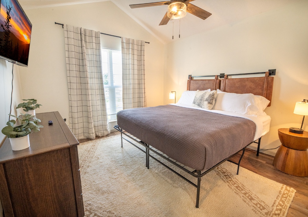 ✔ Bedroom #2 (Upper Level): Spacious Bedroom with a King-size Bed and a Flatscreen TV; Attached Full Bathroom with Shower/Tub Combo