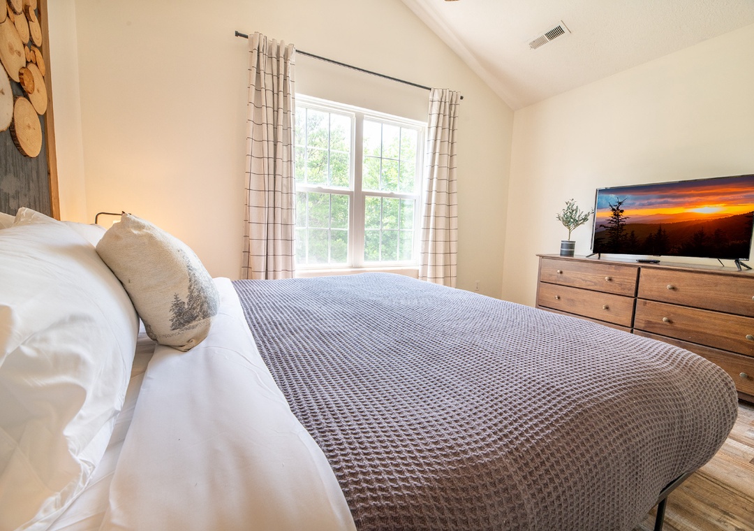 ✔ Bedroom #4 (Upper Level): Comfortable Bedroom with a King-size Bed and a Flatscreen TV; Access to a Full Bathroom with Shower/Tub Combo