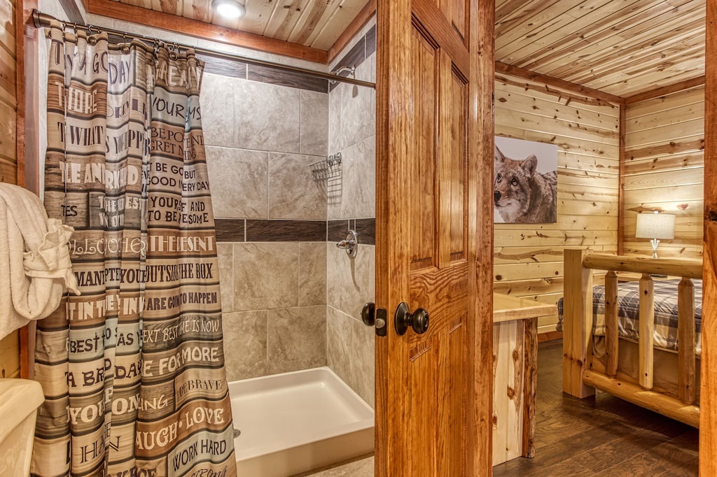 The house has a great layout. The bedrooms all have their own bathrooms. The rooms are all spaced out which made a cabin with nine people feel very spacious, and there definitely was room for more people if you wanted. The location was convenient and we even spotted a bear! I would definitely stay again, and recommend this location to friends!- Reviewed On: 9/12/2023