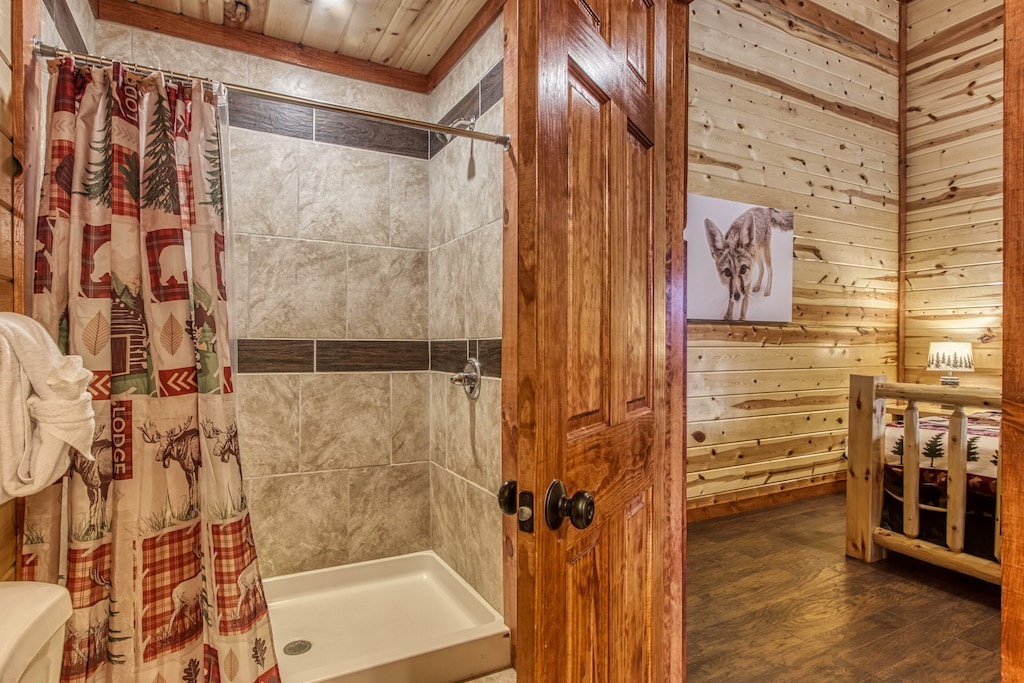 The cabin was beautiful. My kids loved the indoor pool, game room and that they had their own bathroom in each room. My husband and I enjoyed the hot tub and the view with the rocking chairs on the balcony. Great place to stay, and the host was very reaponsive and helpful. If we go back to that area again I would love to book this cabin again!- Reviewed On: 10/10/2023