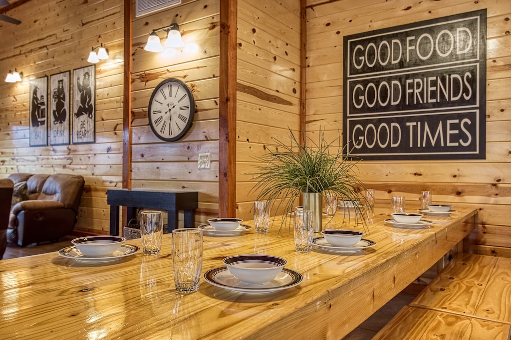 Our family of 13 fit comfortably. We were all surprised by the spacious rooms. There is a lock on the indoor pool which is reassuring for young ones. Justin responded quickly to concerns and questions and is very pleasant to work with. There were two cubs playing in a tree directly off of the back deck. They kept us entertained for at least an hour. I can’t say enough about this beautiful cabin! We certainly will return!- Reviewed On: 6/10/2023