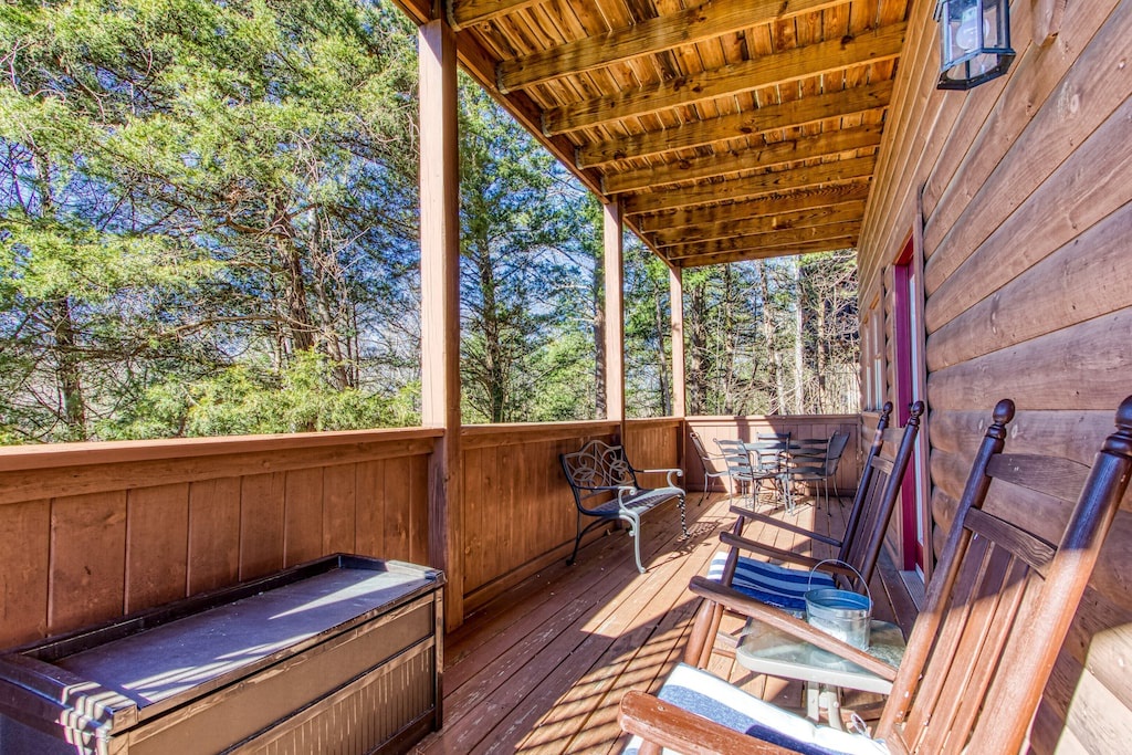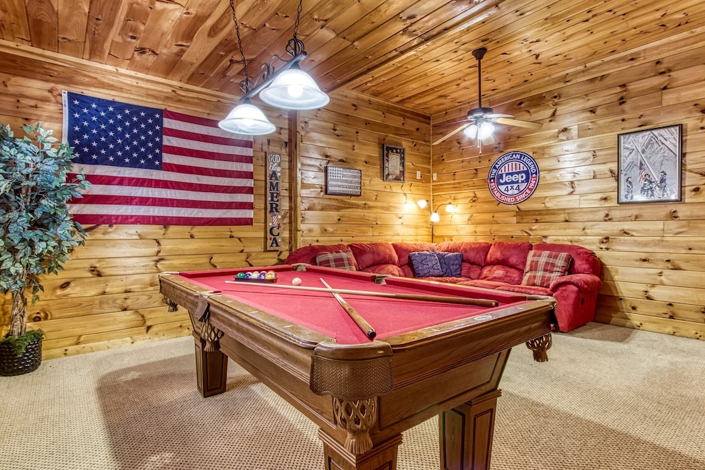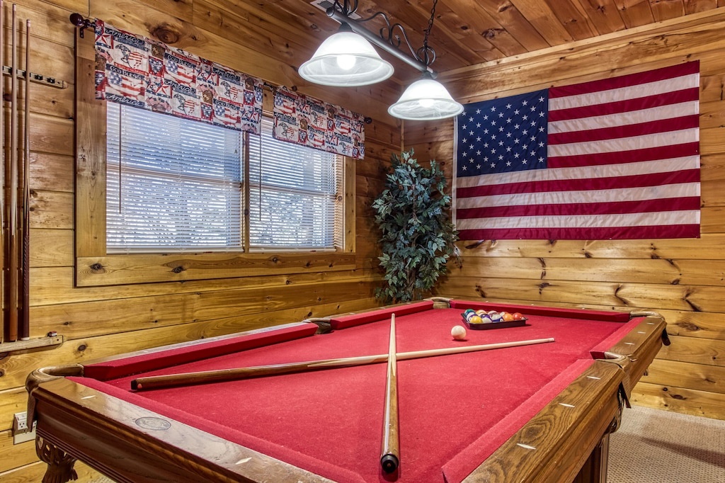 The minute you arrive at Escape From Reality you can sit back and relax inside or outdoors! Outside, you are surrounded by nature and the stillness of the Smokies and can kick back in our hot tub and take in the peace and views from one of the multiple rocking chairs or swing. Or, hop inside and soak in one of the TWO jacuzzi tubs, or just relax on one of the many couches and take a nap! After all, it is vacation! The game room also has additional plush couches and a large pool table - perfect for a competitive game with your family!
