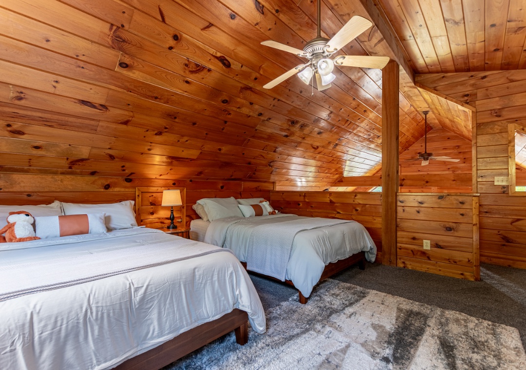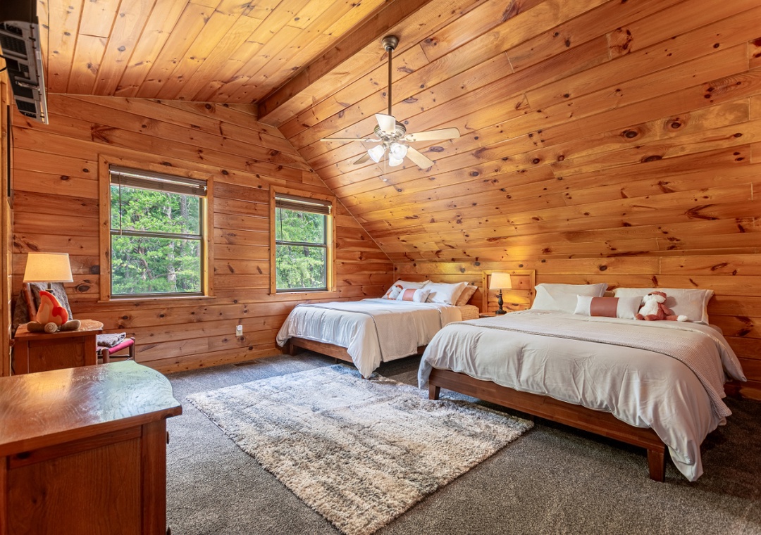 ✔ Bedroom #2 (Loft): Inviting Bedroom with 2 Queen-sized Bed and Flat-screen TV; Access to a Full Bathroom with Stand-up Shower