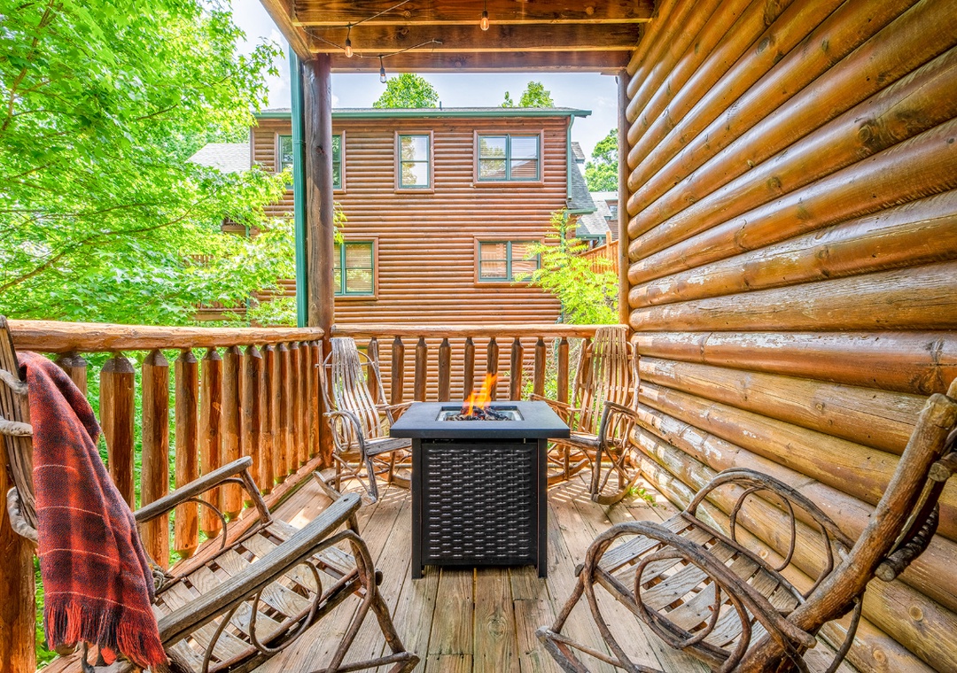 For those who seek entertainment, the game room is a true paradise for both kids and kids at heart. Challenge your friends and family to thrilling matches of air hockey, foosball, and pool, or immerse yourself in a classic arcade experience. It's the perfect spot to unwind after a day of hiking and exploring. You can also step outside onto the deck to fully immerse yourself in the mountain experience. Here, you can relax in a rocking chair while sipping your morning coffee or evening glass of wine. And if ultimate relaxation is what you desire, dip into the rejuvenating hot tub where you can soak while surrounded by the tranquil sounds of the surrounding trees. At the back deck, you’ll also find a fire pit that beckons you to gather 'round the crackling flames under the starry night sky. Beyond the comforts of your cabin, the charming town of Gatlinburg, where you can explore local shops, restaurants, and cultural attractions, is just minutes away. Whether you're seeking adventure or relaxation, “Firefly Lodge” is your gateway to a memorable Smoky Mountain getaway.
