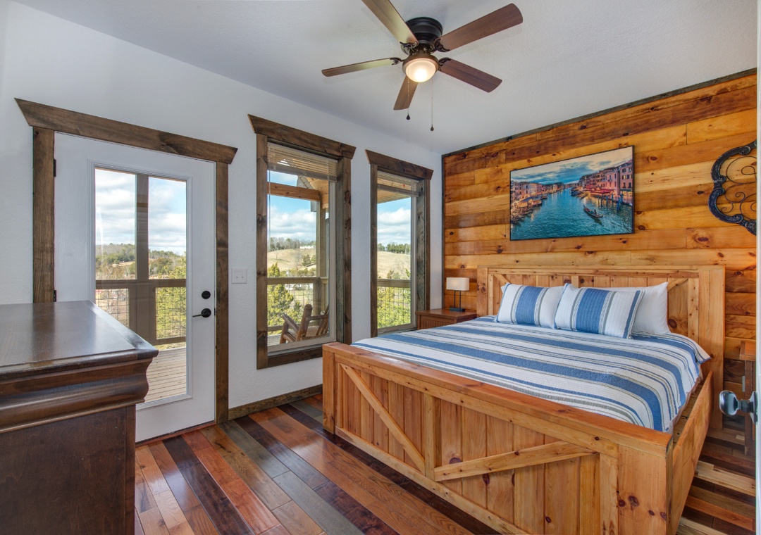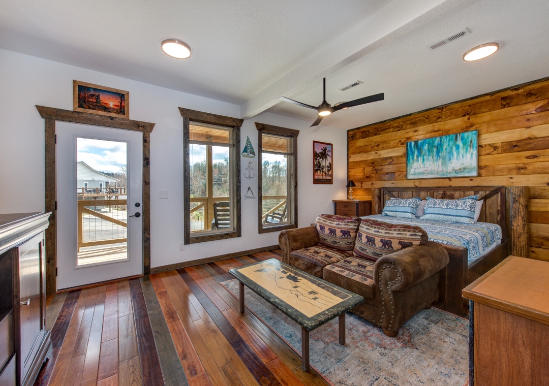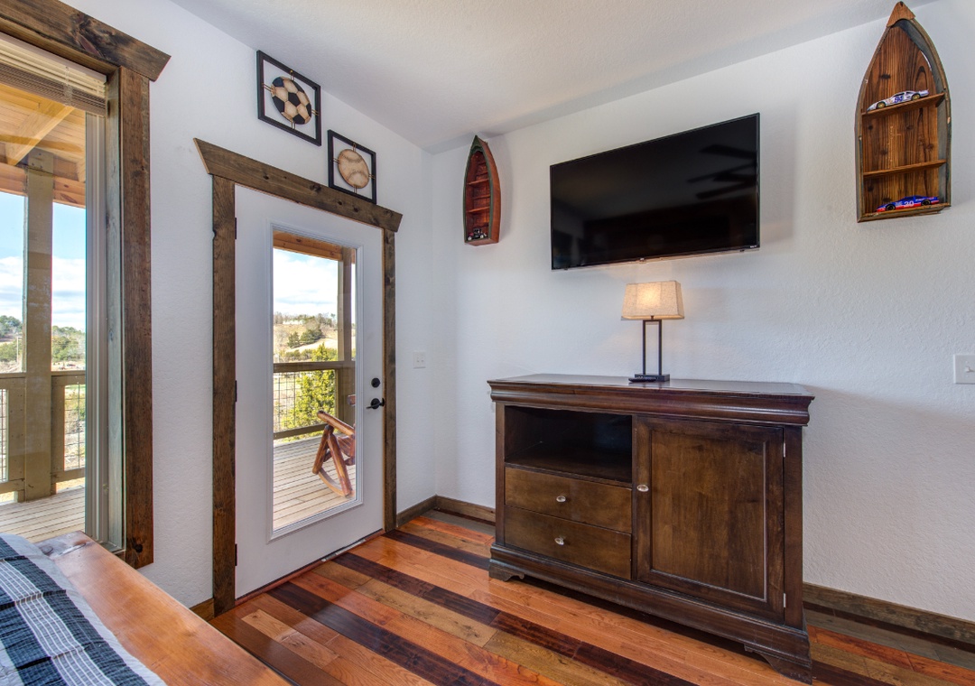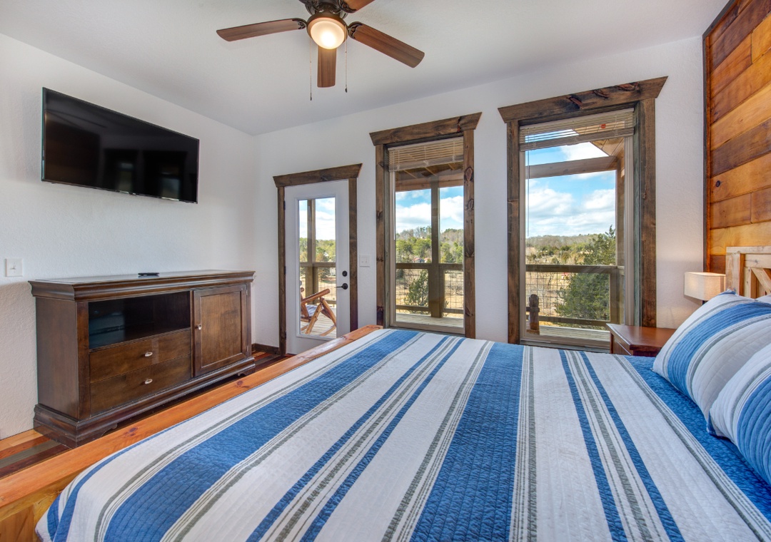 • Bedroom 2 (Second Level): King bed, flat-screen TV, access to hallway bath (shower/tub combo)