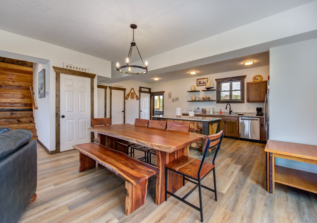 Gather at the dining table for game nights or meals, then head upstairs to the game