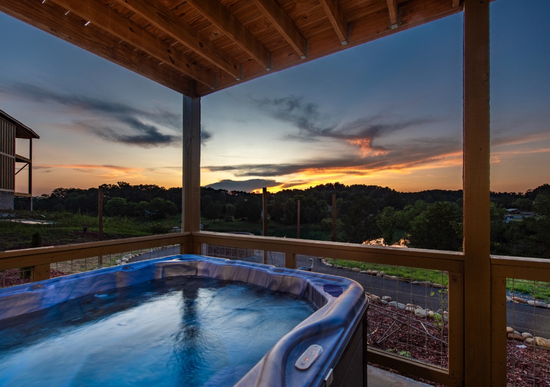 • Private hot tub with scenic mountain and lake views