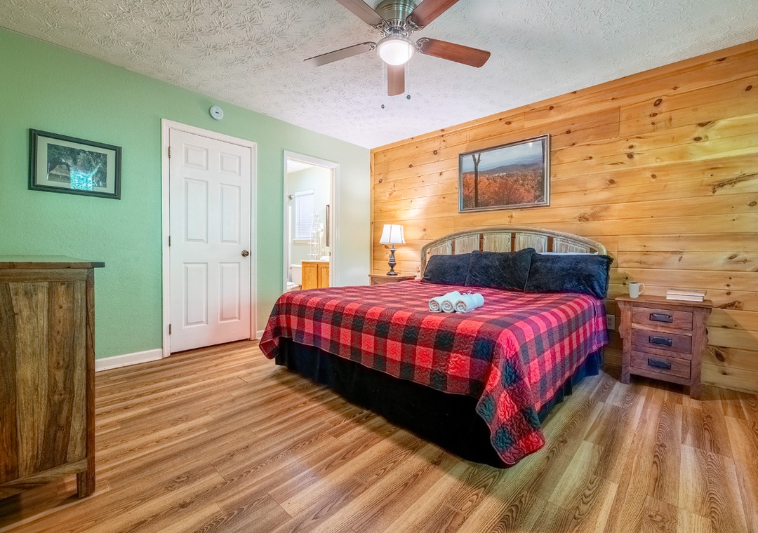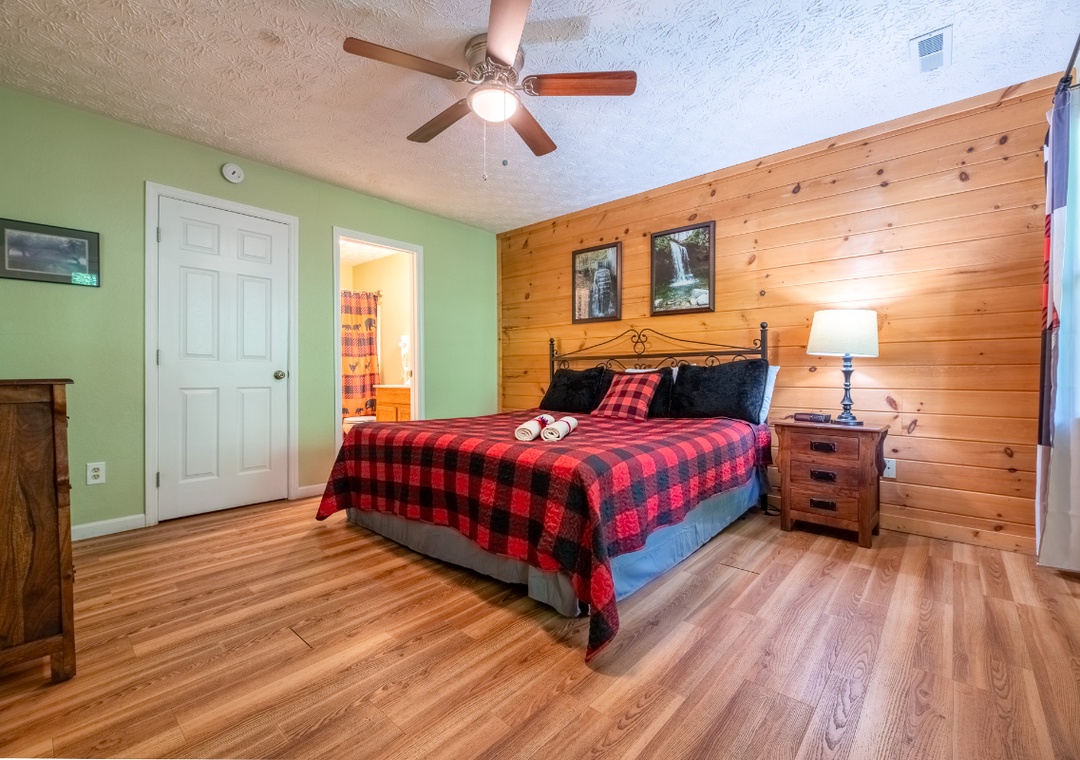 ✔ Bedroom #1 (Main Level): Spacious Bedroom with a King-sized Bed and a Flat-screen TV; Attached Full Bathroom with Shower/Tub Combo