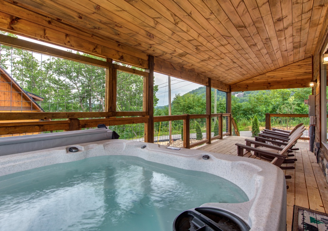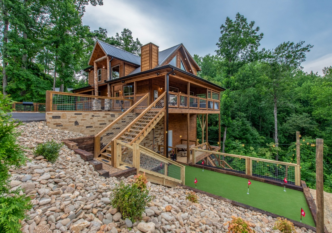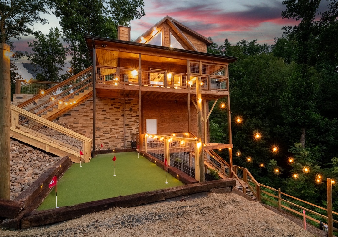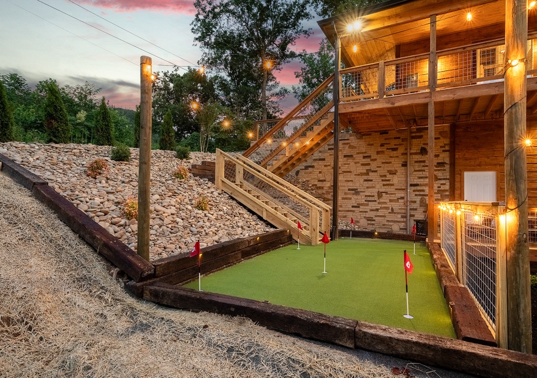 Start in the living room where a massive 65" Roku TV and an electric fireplace take center stage, surrounded by plush leather sofas that invite you to sink in and stay a while. Upstairs, the game loft is a favorite hangout for guests of all ages with a full-size pool table that offers hours of friendly competition and a multicade arcade that brings a rush of nostalgia and nonstop fun. Step outside, and you’ll find even more ways to play. Just off the deck, there's a private putt-putt course ready for casual rounds and family tournaments. Nearby, a roping practice game adds a unique twist, perfect for trying something new or showing off your cowboy skills. These outdoor games turn the cabin’s property into your own mini amusement park without the crowds or lines. When it's time to relax and recharge, the hot tub on the right side of the property offers the perfect escape. Sink into the warm bubbles and let your muscles unwind as you take in the serene surroundings. It's the ideal spot to relax after a full day of play or to enjoy a quiet evening under the stars. "Friends in Bear Places" is the perfect destination for families, friends, or anyone looking to make their mountain vacation unforgettable with non-stop entertainment and a whole lot of heart.