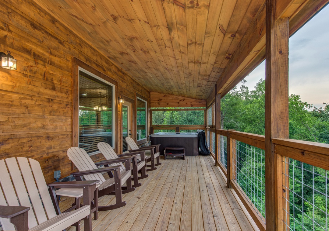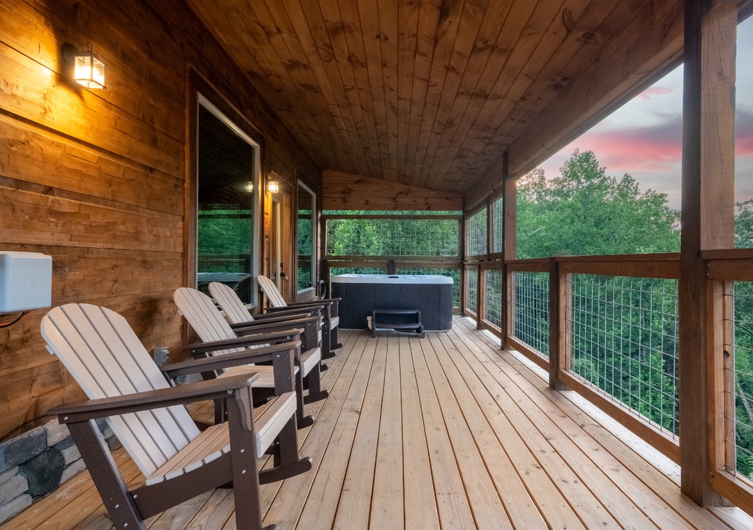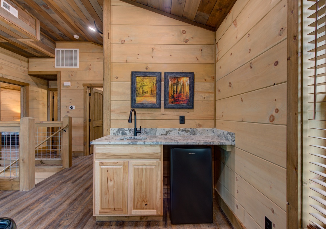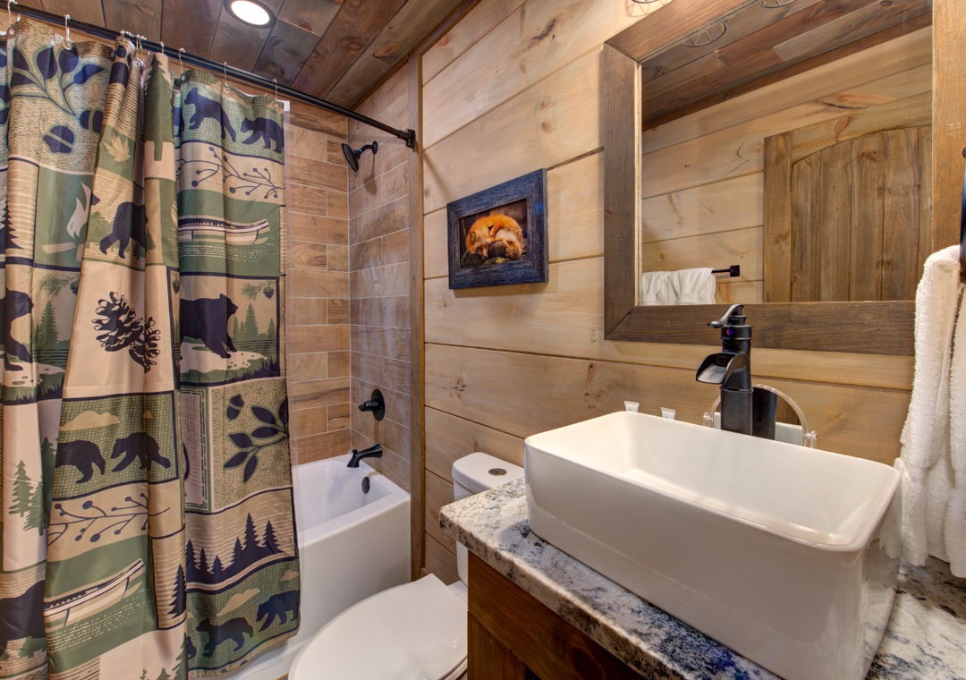 Start in the living room where a massive 65" Roku TV and an electric fireplace take center stage, surrounded by plush leather sofas that invite you to sink in and stay a while. Upstairs, the game loft is a favorite hangout for guests of all ages with a full-size pool table that offers hours of friendly competition and a multicade arcade that brings a rush of nostalgia and nonstop fun. Step outside, and you’ll find even more ways to play. Just off the deck, there's a private putt-putt course ready for casual rounds and family tournaments. Nearby, a roping practice game adds a unique twist, perfect for trying something new or showing off your cowboy skills. These outdoor games turn the cabin’s property into your own mini amusement park without the crowds or lines. When it's time to relax and recharge, the hot tub on the right side of the property offers the perfect escape. Sink into the warm bubbles and let your muscles unwind as you take in the serene surroundings. It's the ideal spot to relax after a full day of play or to enjoy a quiet evening under the stars. "Friends in Bear Places" is the perfect destination for families, friends, or anyone looking to make their mountain vacation unforgettable with non-stop entertainment and a whole lot of heart.