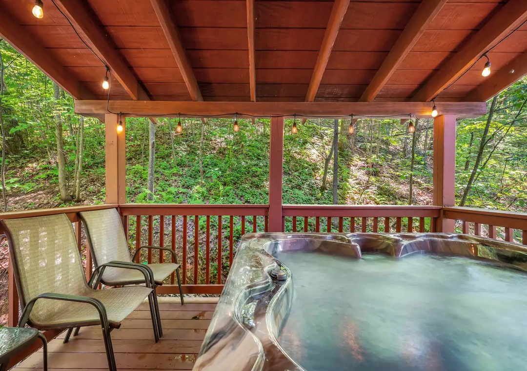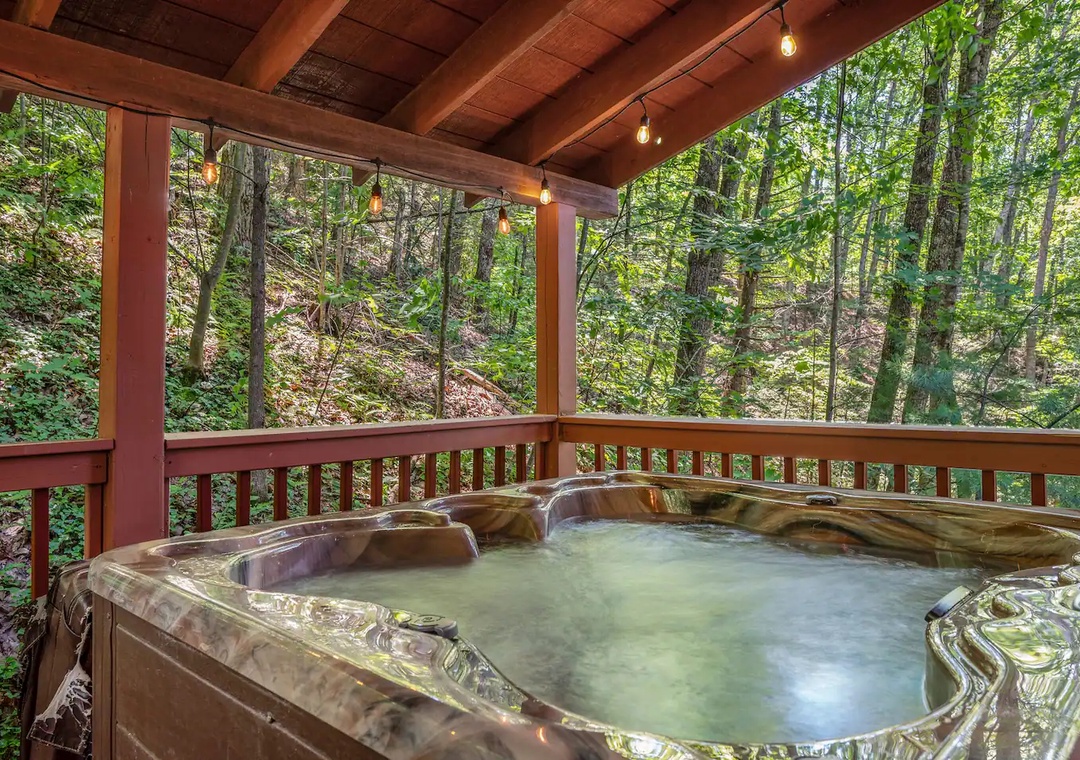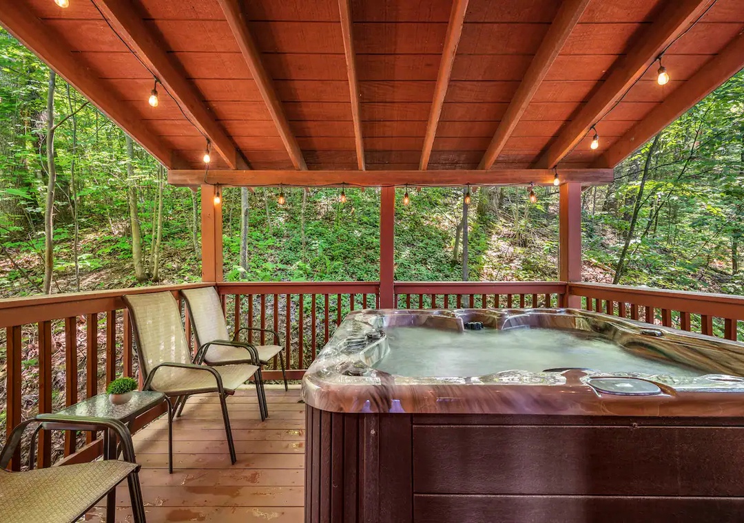 - Private back deck with hot tub