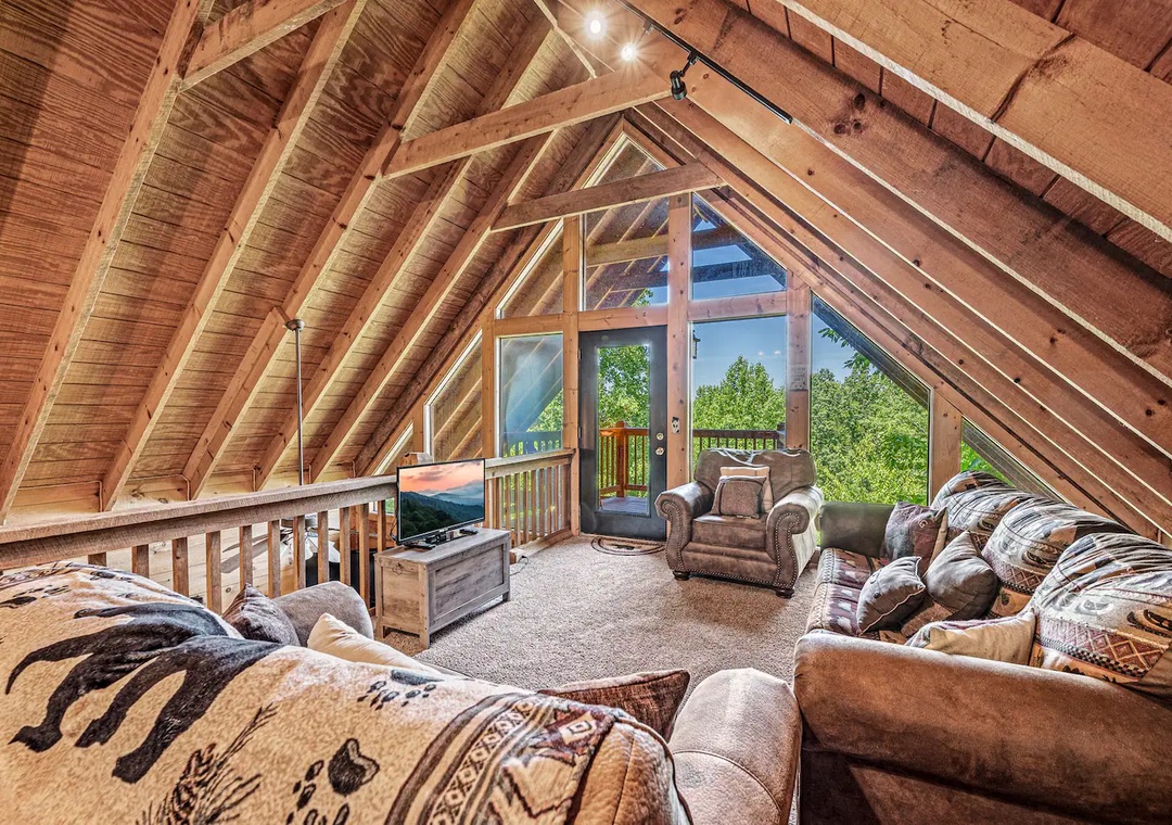 - Bedroom #2 (upper level loft): King-sized bed + Queen-sized sleeper sofa