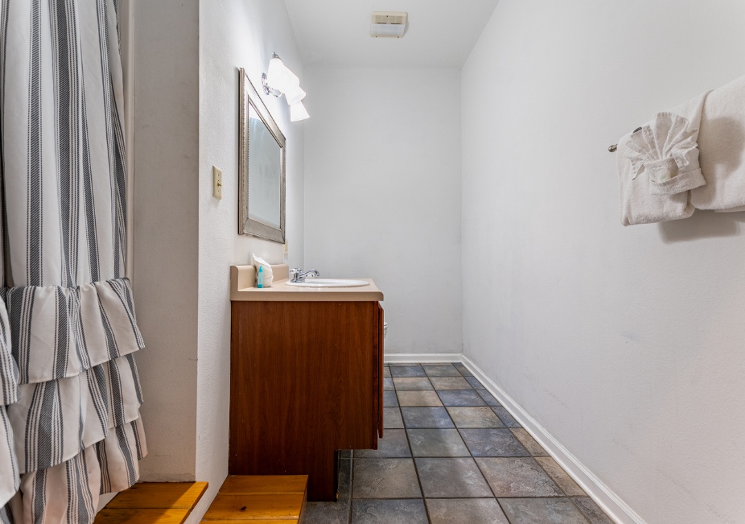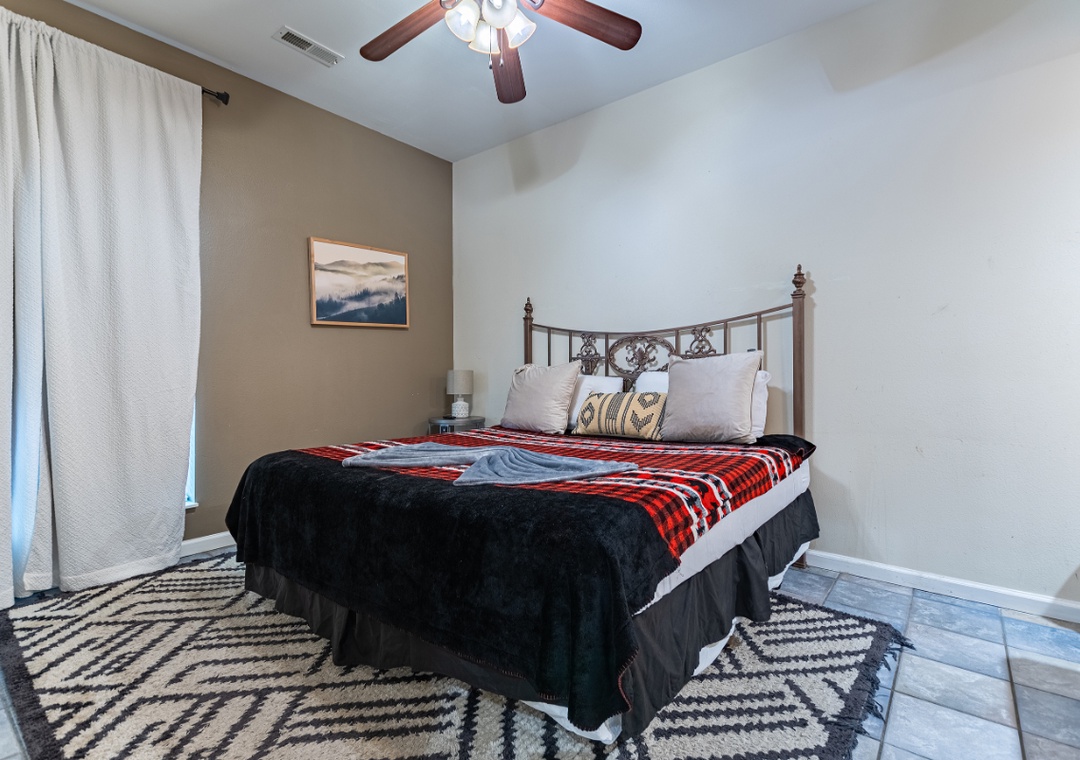 ✔ Bedroom #2 (1st Upper Level): Comfy Bedroom with a King-sized Bed and Flat screen TV; Attached Full Bathroom with Shower/Tub Combo