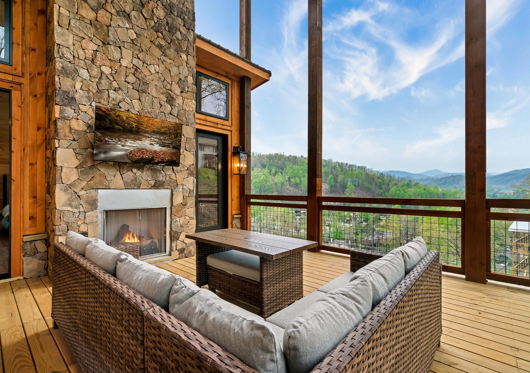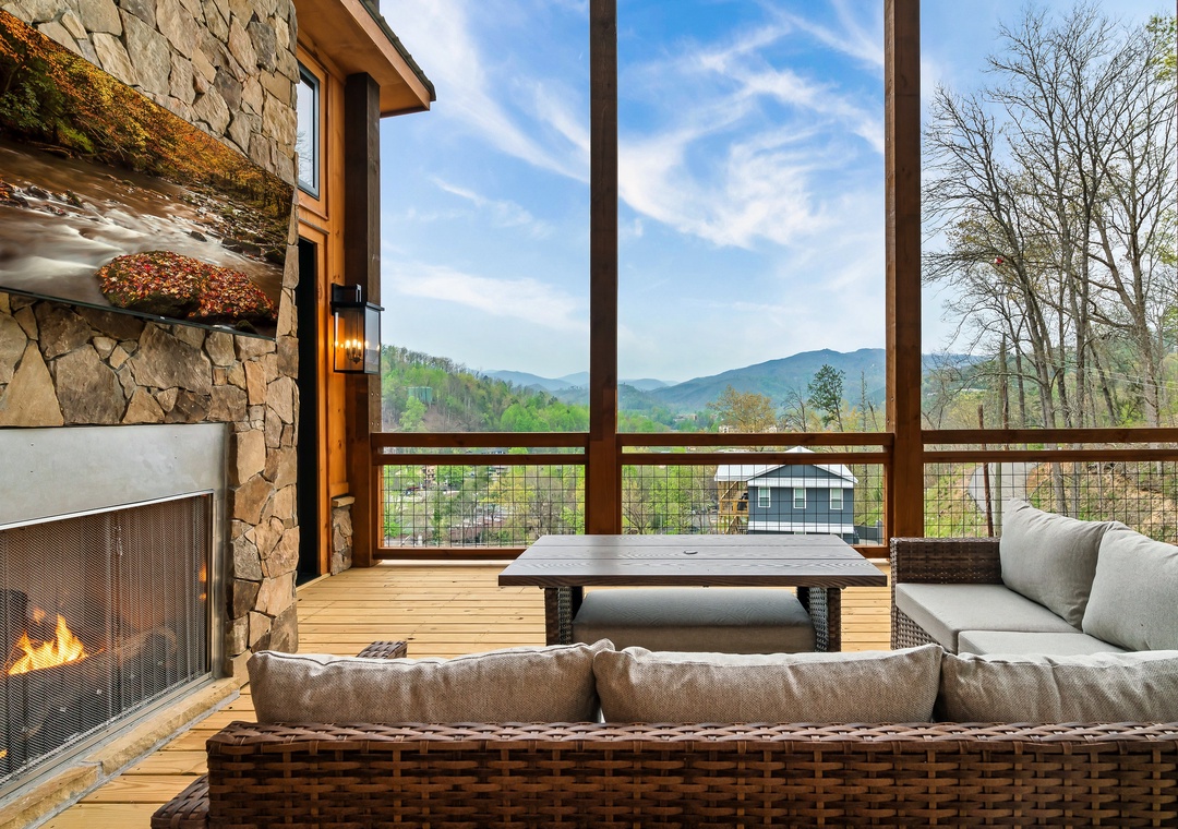 In the spacious living room, a crackling fireplace invites you to gather with friends and family for cozy evenings of relaxation. As the sun sets, move to the main level side deck, where another fireplace awaits alongside a cozy seating area, perfect for intimate conversations under the starlit sky. For those craving excitement, head to one of the 2 game rooms, where a Shuffleboard, Foosball Table, Card Table, Basketball, and Multicade with hundreds of preprogrammed games await. Challenge your companions to friendly competitions or hone your skills in a game of skill and strategy. When it's time to unwind with a movie or two, retreat to the dedicated Theater room. Immerse yourself in the cinematic experience with an 85" TV and DVD player, creating memories that will last a lifetime. But the entertainment doesn't end indoors. Step outside to the lower level back deck and slip into the inviting hot tub. As you soak away your cares, take in the breathtaking mountain views and let the tranquility of nature wash over you. And for the ultimate indulgence, take a dip in the private heated indoor pool. With its panoramic views of the Smokies, it's the perfect place to swim, relax, and rejuvenate in a setting that feels like paradise.