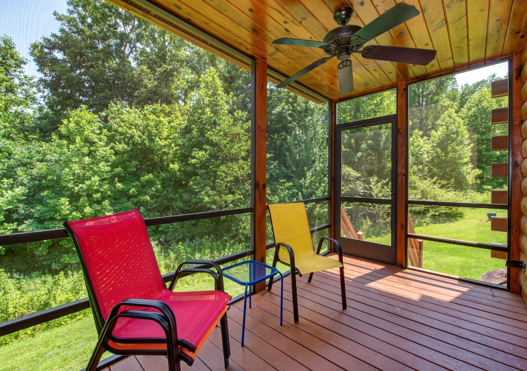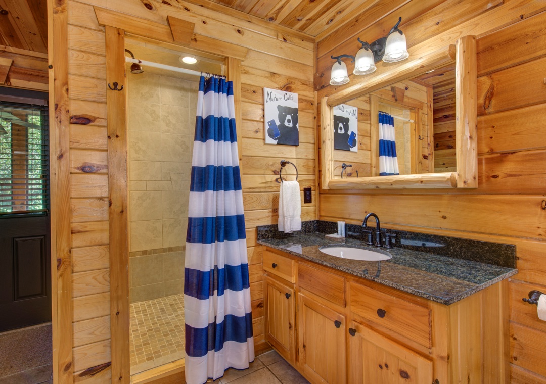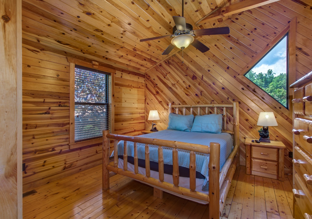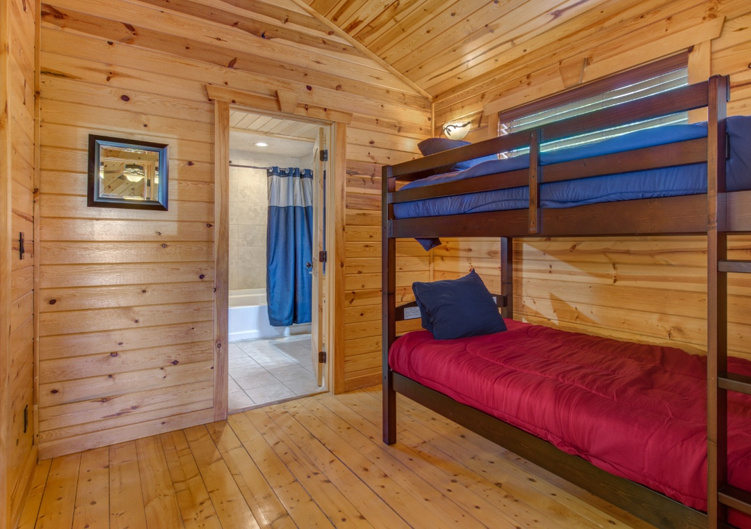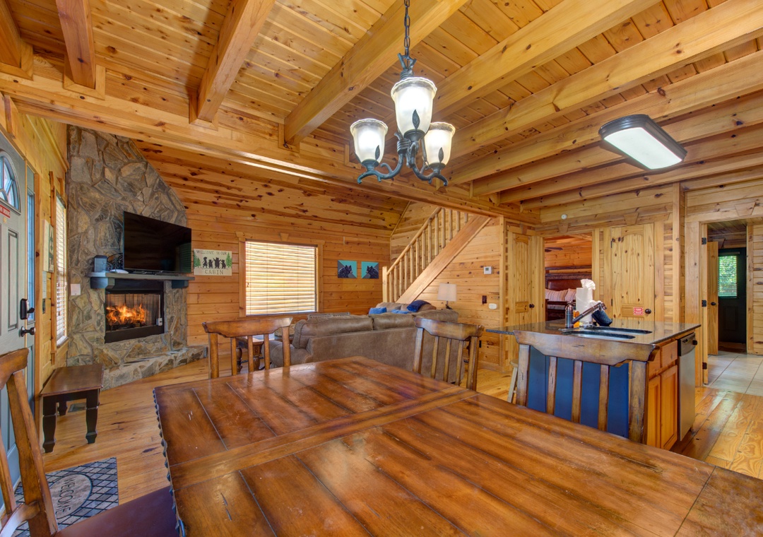 Start in the spacious living room and unwind in front of the cozy propane fireplace while streaming your favorite shows or movies on the massive 58" Roku TV. For some friendly competition, head up to the loft, where a full-size foosball table awaits. It's a great hangout space for kids and adults alike, offering hours of indoor fun. When it's time to relax, step out onto the screened-in back porch and soak in the bubbling hot tub, surrounded by the peaceful sounds of nature. It's the perfect spot to unwind after a day of hiking, sightseeing, or hitting the nearby shops and attractions. During warmer months, guests also have access to the seasonal community pool located at the entrance of the resort. It’s a great way to cool off on a sunny afternoon or spend a laid-back day swimming and lounging with the family. And when you're ready to venture out, you'll find no shortage of entertainment nearby. The cabin is just minutes from downtown Gatlinburg, with its vibrant mix of attractions, restaurants, shops, and live entertainment. You’re also close to Bent Creek Golf Course, local hiking trails, and the famous Arts and Crafts Community so you’re never far from something fun to do.