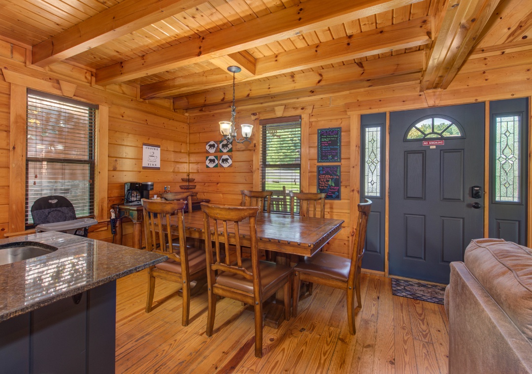 The fully-equipped kitchen boasts modern amenities, making it easy to prepare delicious meals for your family or friends. Well-appointed with a full-sized refrigerator, dishwasher, stove, microwave, and other kitchen appliances perfect for making breakfast, lunch, or dinner throughout your stay! All pots, pans, glasses, plates, silverware, etc., are also there for you! Gather around the inviting dining table to share stories and laughter, as it invites you to savor each bite while taking in the natural beauty of the surroundings.