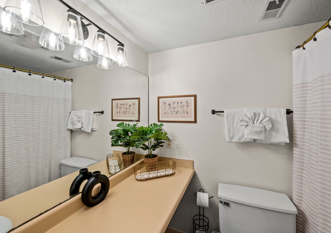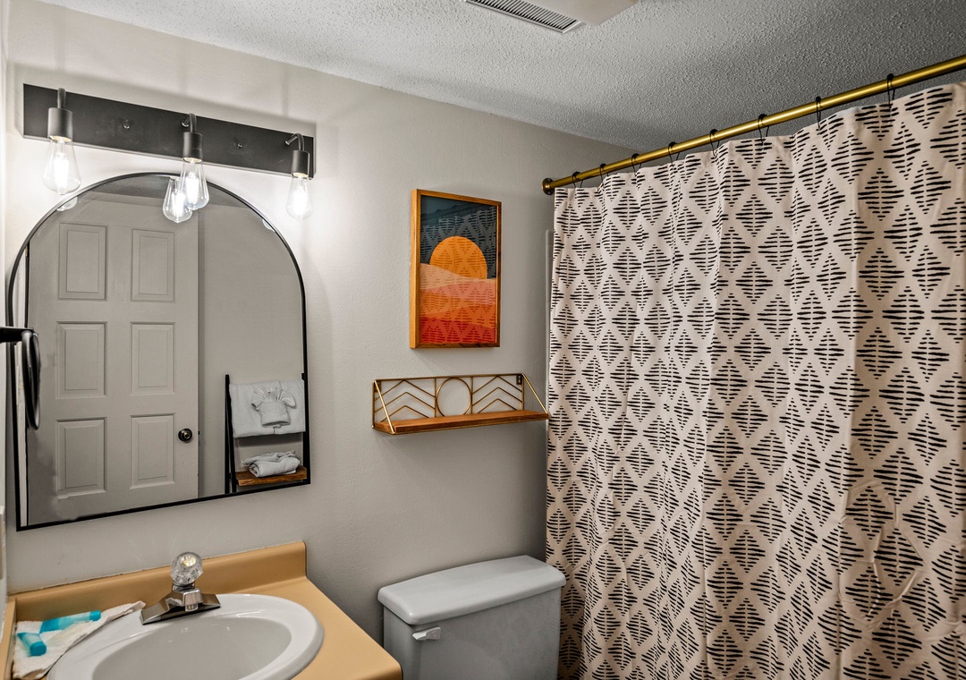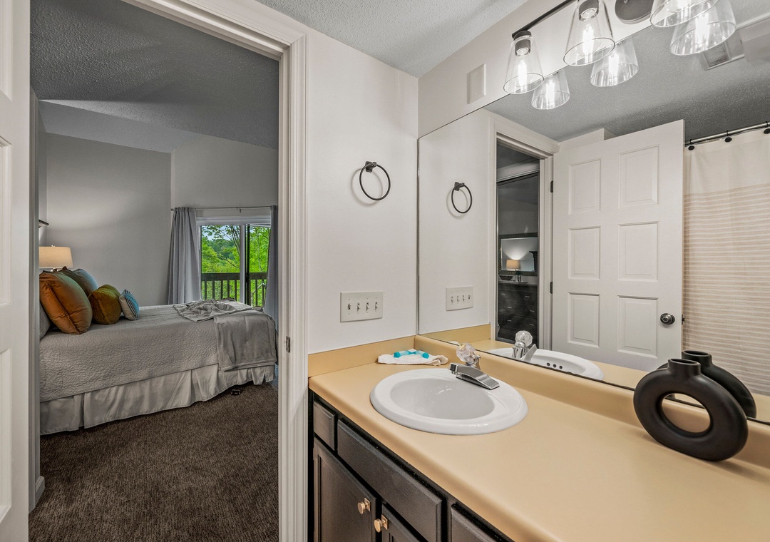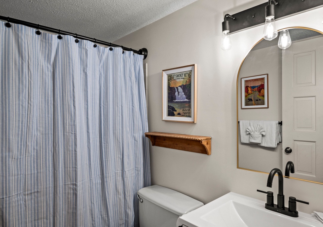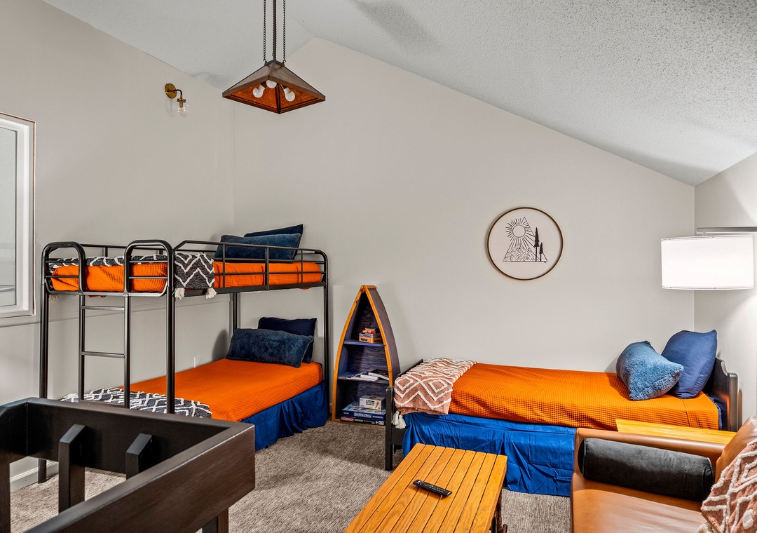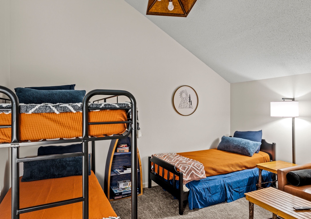 ✔ Bedroom #3 (Upper Level): Cozy Bedroom with a Twin-over-Twin Bunk Bed and a Twin Bed; Attached Full Bathroom with Shower/Tub Combo